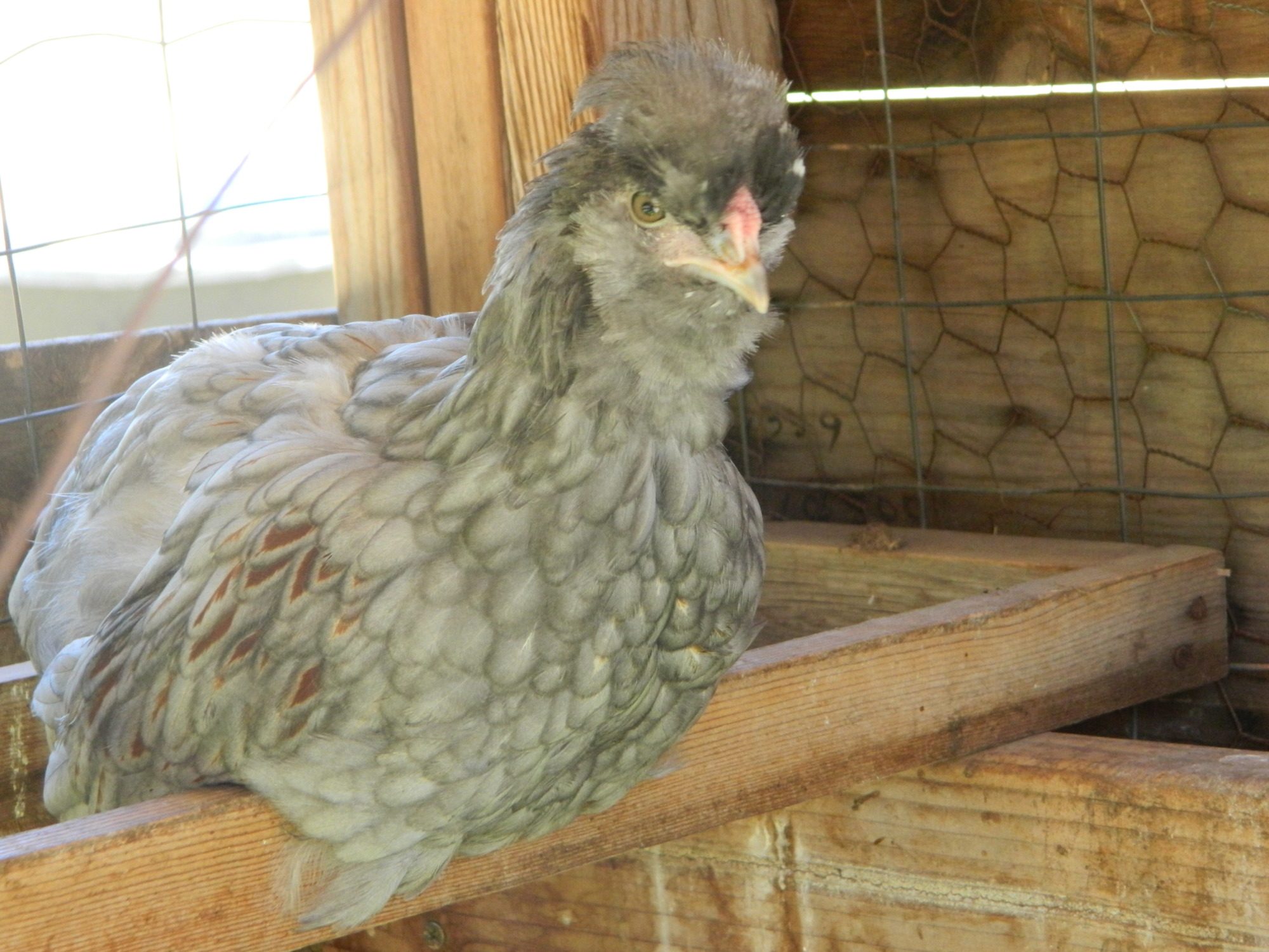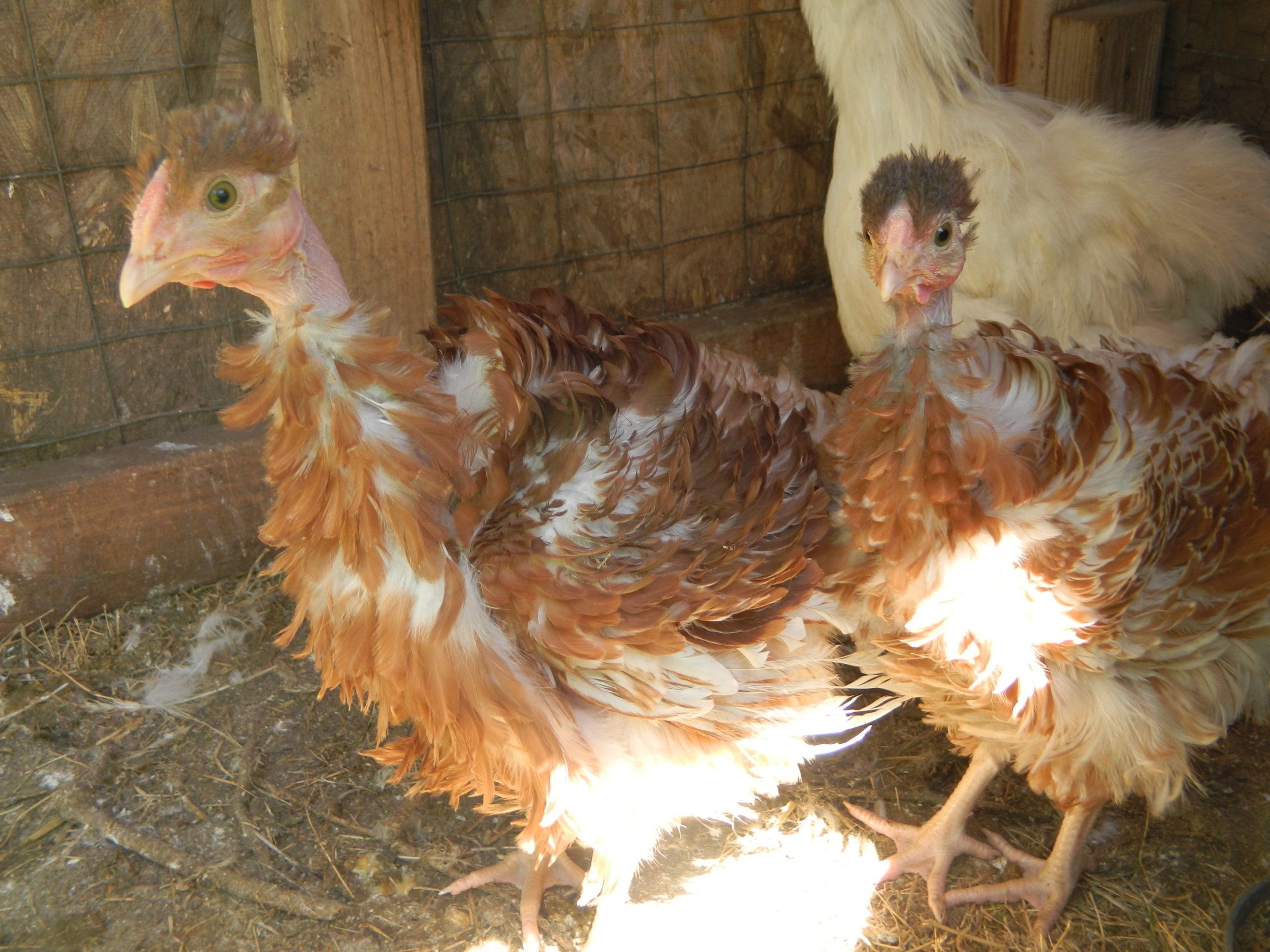 These two are frizzle kids of the two frizzles I put with the showgirl. Their dad is the (splash) blue laced red Wyandotte.