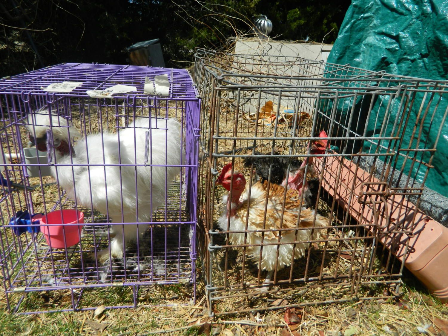 He hates being caged up. He crows at the other two roos constantly and when he hears the hens singing their egg song he really goes nuts. POOR GUY. He isn't eating good for me and I'm afraid he'll lose weight. He eats the dry better than the fermented, so maybe u should give me your fermented recipe. I havem't checked yet tonight to see if he ate much of the fermented. He does love haveing a roost in there and room to move aroumd.