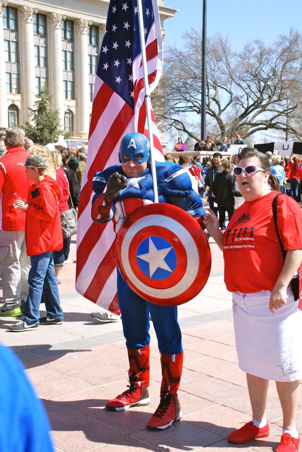 Captain America was there. He was pointing at me to come have a picture taken with him. I was behind the camera, though. I'm happier that way.