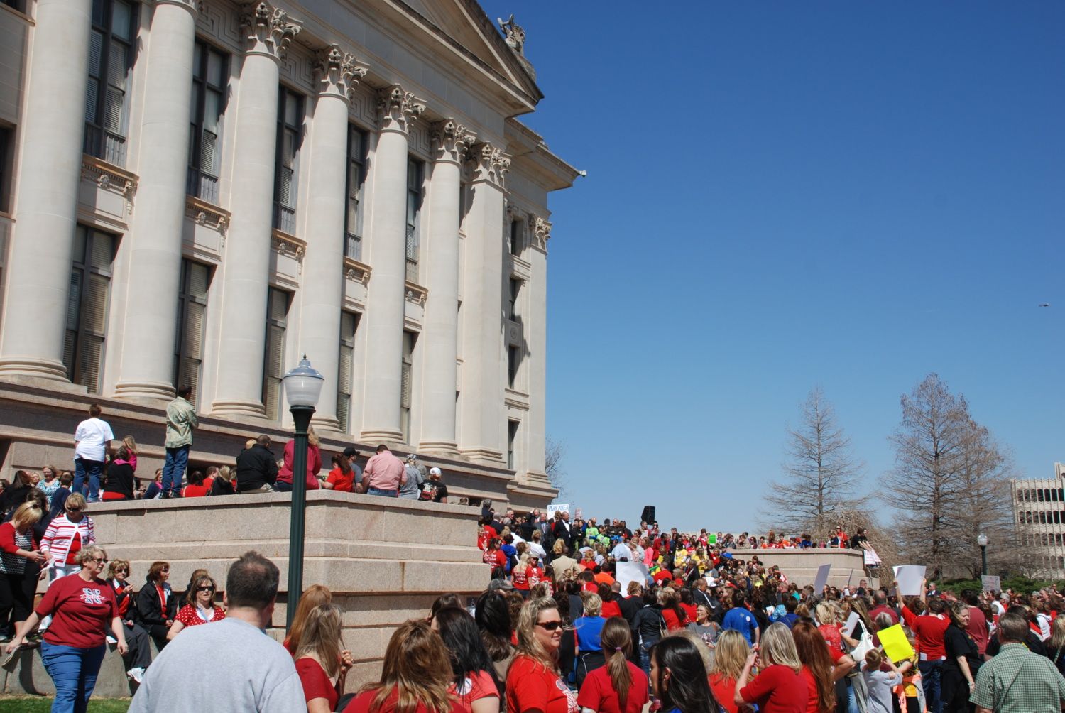 And in we go. After the rally, teachers and administrators went into the Capitol building to visit with our representatives. Long lines. Grouchy faces on those who tend to vote against education. Glad hands and big smiles from those who vote for education. I hope we made a difference.