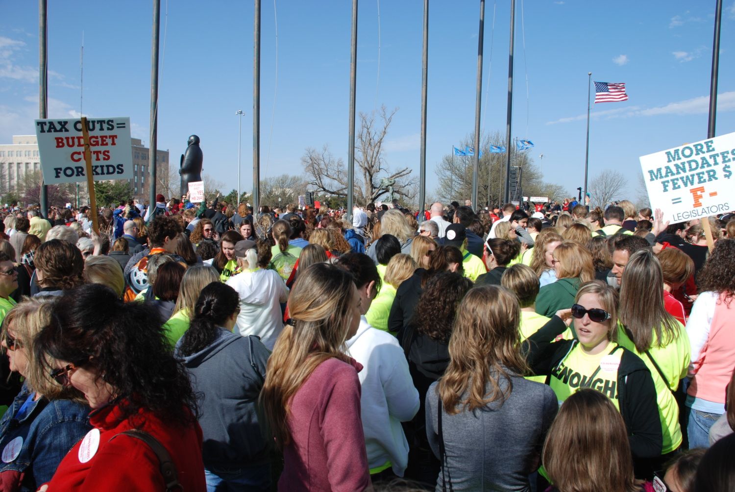 And in we go. After the rally, teachers and administrators went into the Capitol building to visit with our representatives. Long lines. Grouchy faces on those who tend to vote against education. Glad hands and big smiles from those who vote for education. I hope we made a difference.