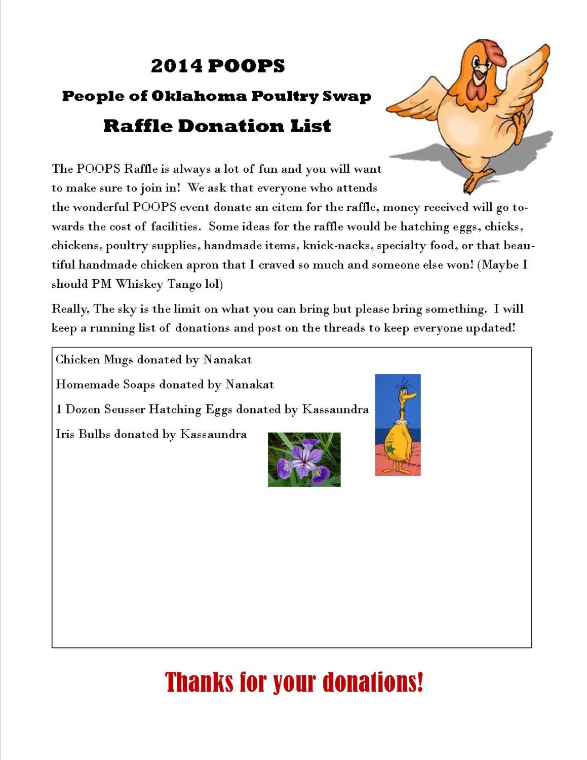Do you guys think there would be any interest in the Buff Brahma Bantams? The chicks of Buffy and Van Helsing are happy, healthy and strong, not even a spraddleleg in the hatches now. If so, I could bring a pair for the POOPS raffle.