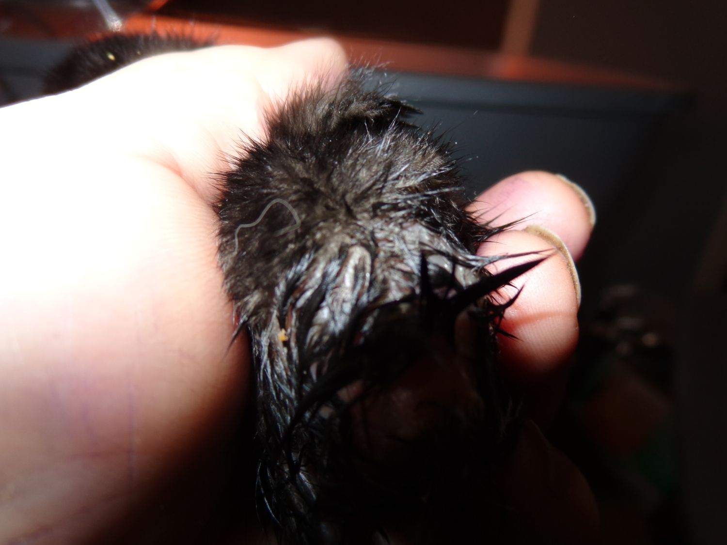 One of them has been constipated, so yesterday, I soaked her and cleaned her little bum. Made a little mash w/ olive oil which she hasn't touched. Al; the other have though. This morning same thing, hard poo stuck to her, so I soaked her again and put mineral oil on her. I thought that I have been really gentle but she looks prolasped to me. She finally did poop when I was taking pictures to put on here. I've been bawling for the last hour, because I'm so stupid I can't even work the camera right. It has too many gadgets on it for me. Monday, I'll stop by Robins and she can give me lessons on picture taking. Anyway, I haven't done any research yet. but this is the best I could do w/ pics. Hubby said to rub some hemroid cream on her and see if that would help. Something so tiny, I would have no idea how to help.