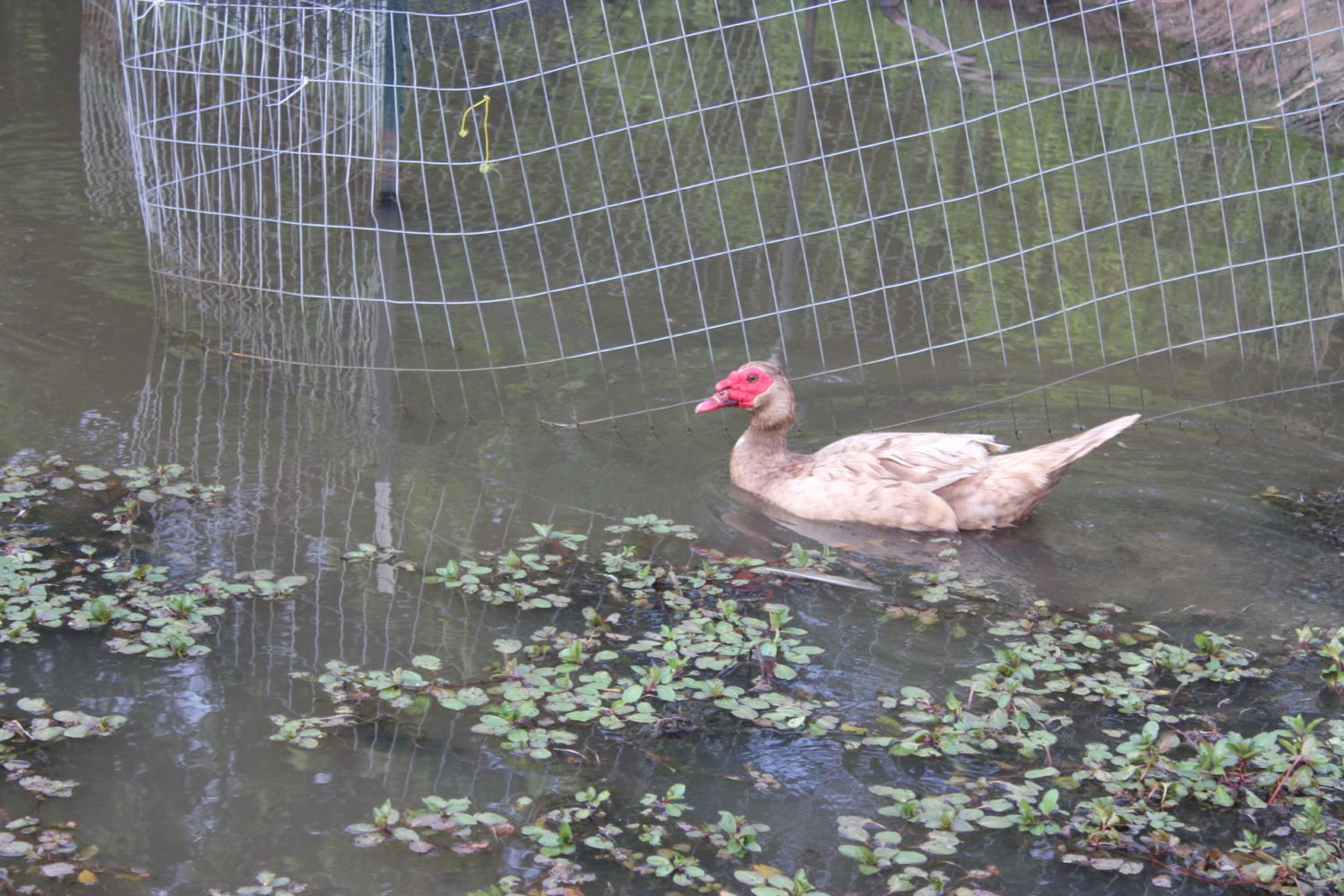 Chocolate Muscovies- they have learned how to slip in and out under the enclosure fence now that the water has gone down, sneaky things! All except the hen sitting on eggs!