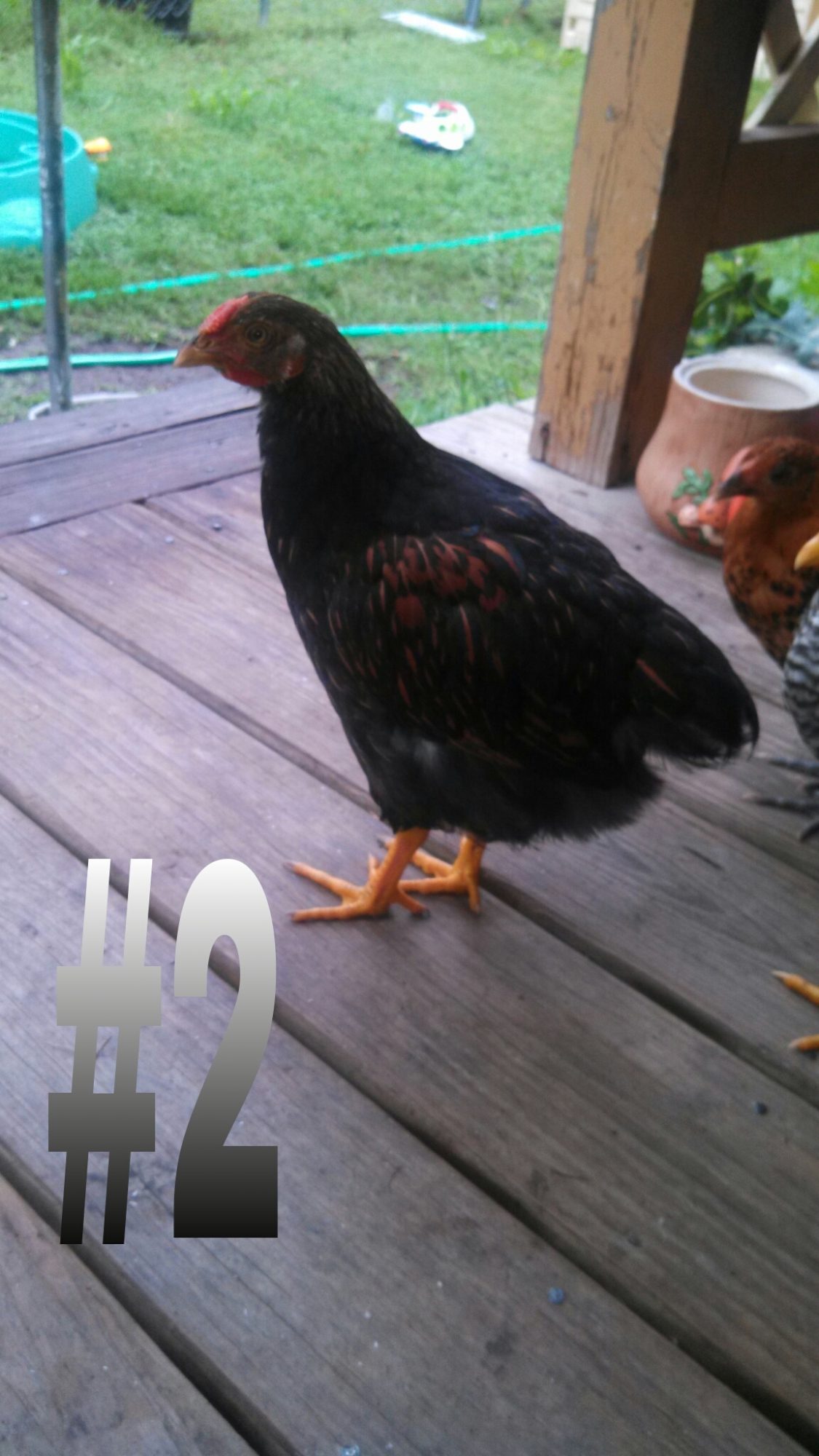 Here are my gold laced wyandottes. All have thick legs. Not much for tail or saddle feathers.#1 & #2 have rose combs? (Not sure still learning combs) And #3 has a single comb? I know you can't see it in the pic.. stubborn chicken! Also, #1 and #2 have teeny tiny waddles and #3 has a bigger set of waddles. Thanks in advance for any suggestions on sex.