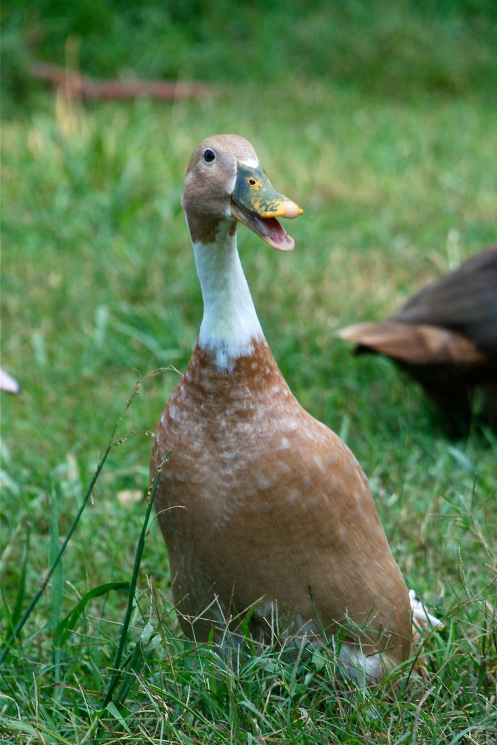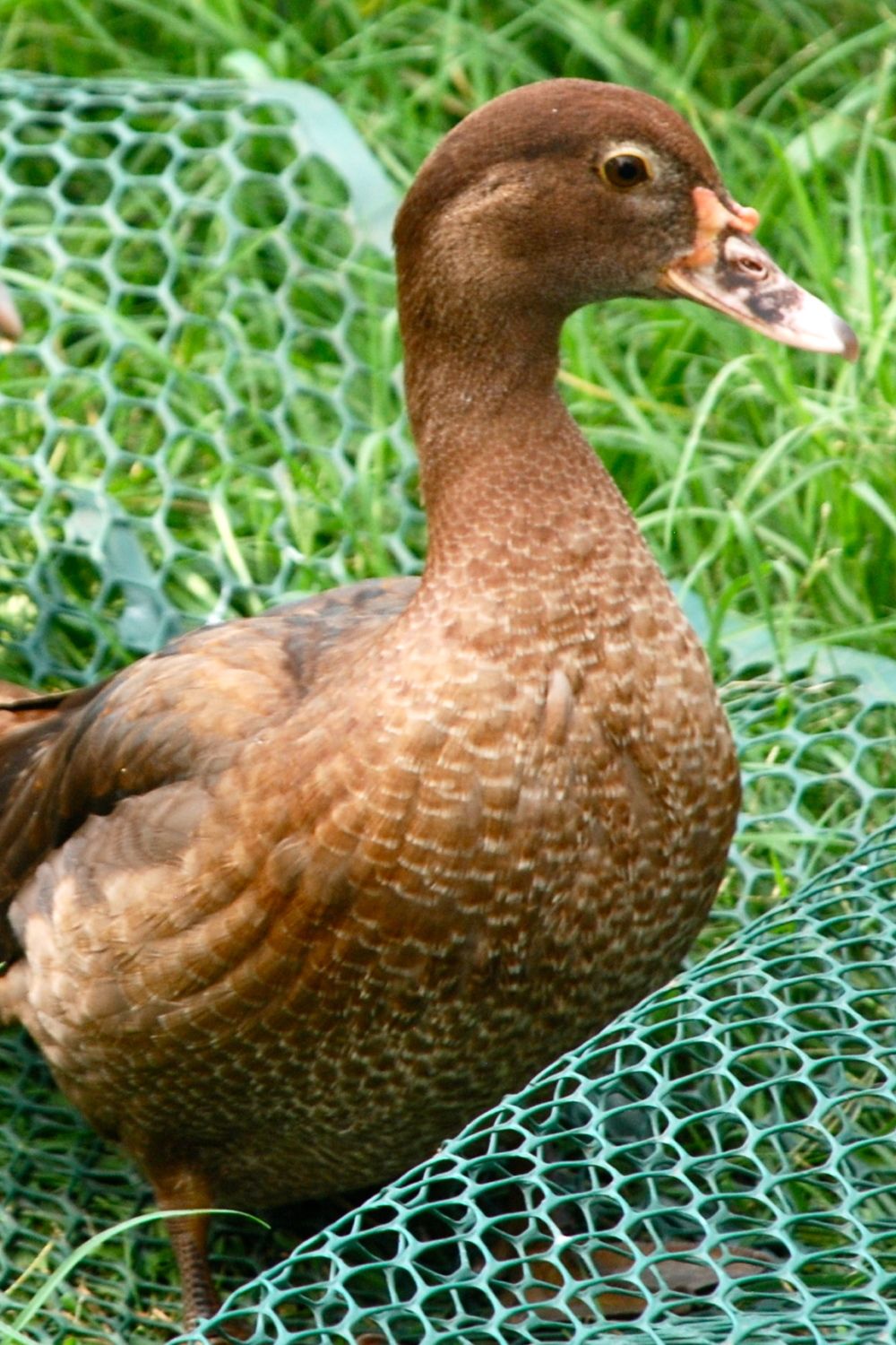 This is a shy little guy, an adorable Muscovy drake, from Shelbydog. He makes an "aaaaah aaaaah" noise when I hold him. He has intensely expressive eyes. Maybelline should look into a gold/orange eyeliner for dark-eyed women.