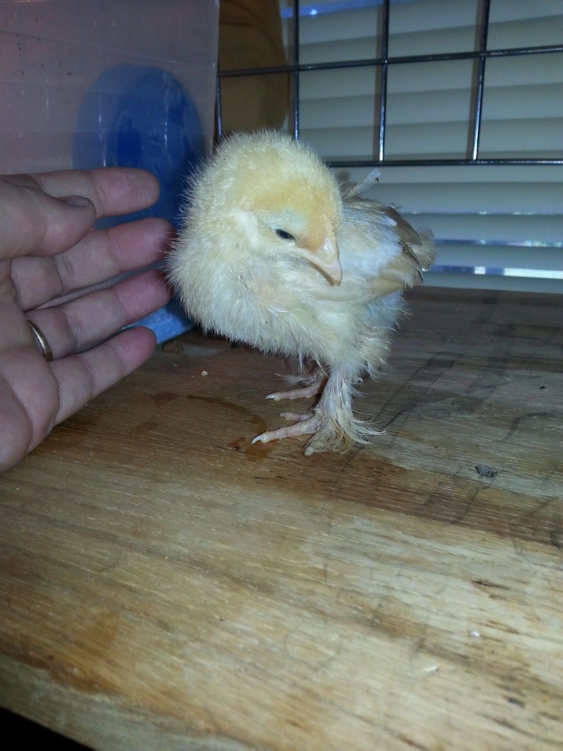 I got two pics of this one below because its feathers growing in on its wings, seem to be pointing outward, do yall think she might be frizzle? Either way so far i think shes my favorite!