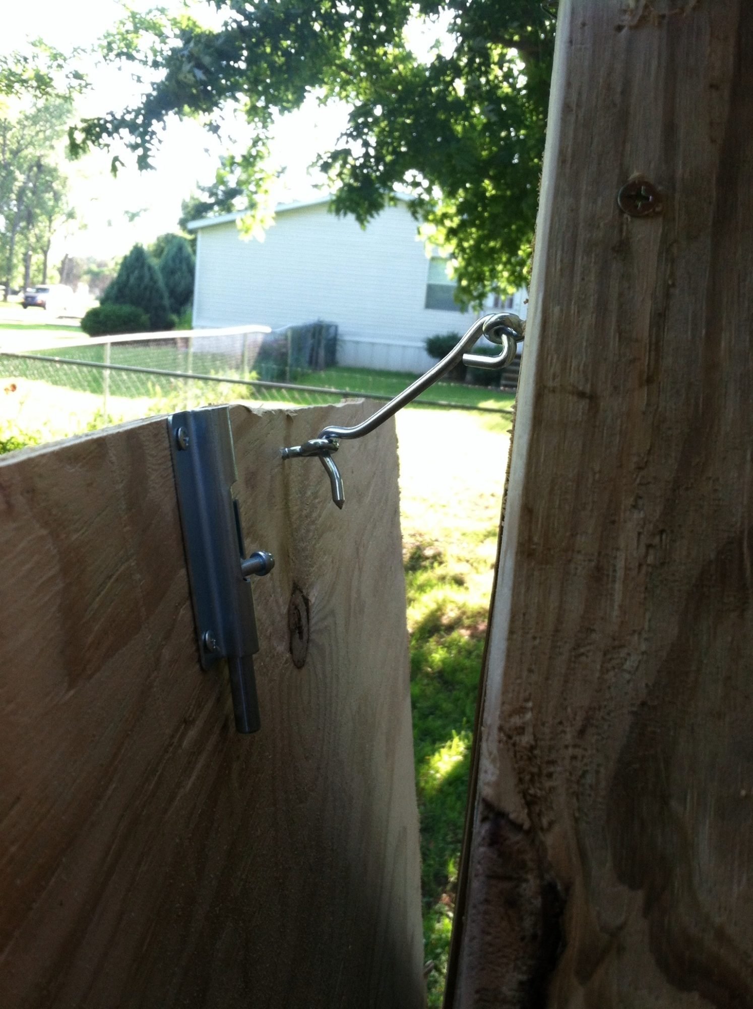When we put the new pens together there was a 5' panel left. I put it in the middle of one of the 5'x10's to create two 5'x5's. I hinged the front panel of one of the 5'x5's to create a make-shift gate since the store said that ordering just one gate panel is $500.00! The entire pen kits are only $350.00! (The store explained that they would have to order individual pieces from China).![]()