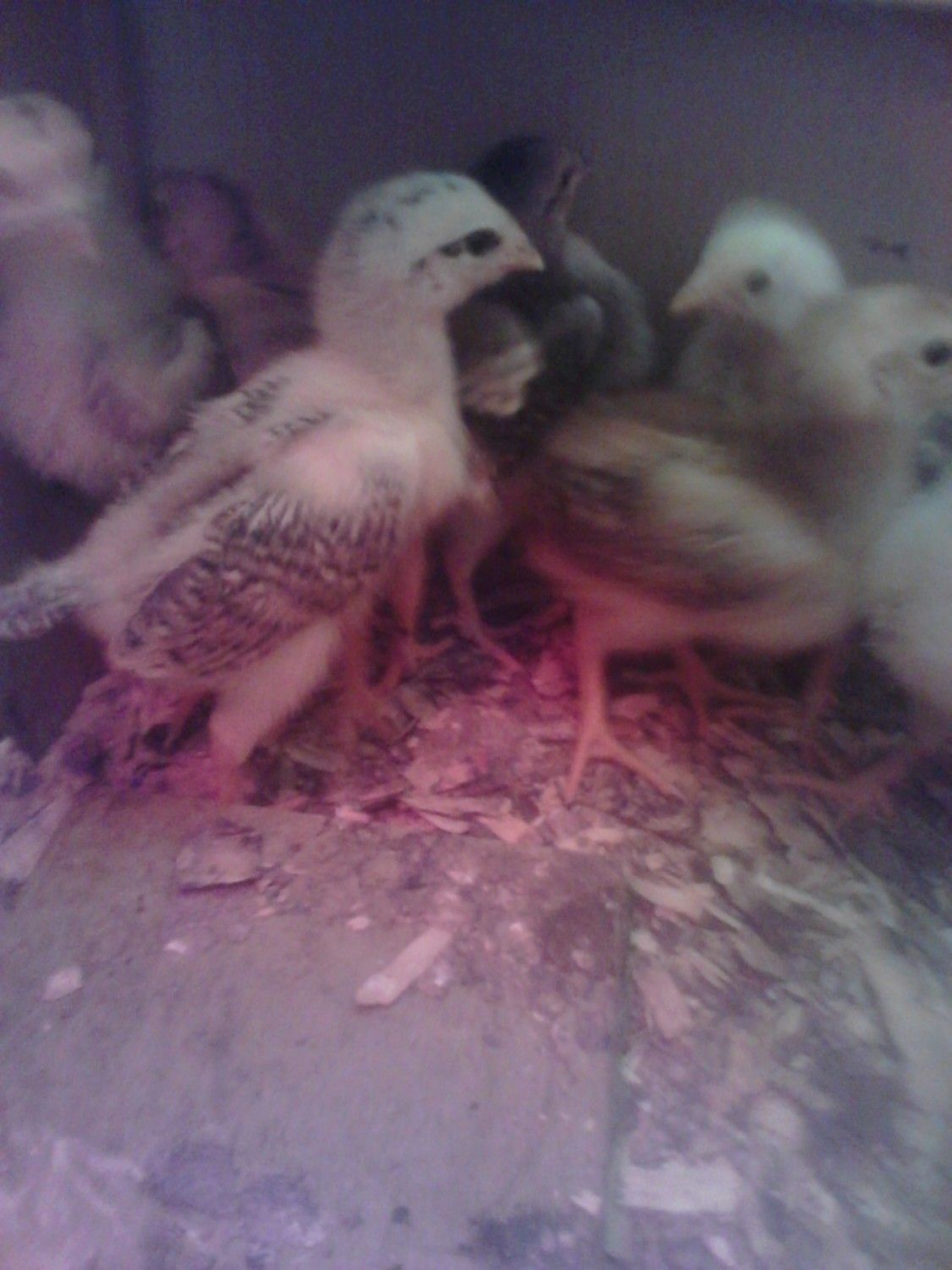 And our newbies, two Polish and an EE. Our EE is standard where all the rest (besides Lucy) are bantams, so he's huge compared to the rest, lol. Since he has turned out to be a boy, we will be giving him away.