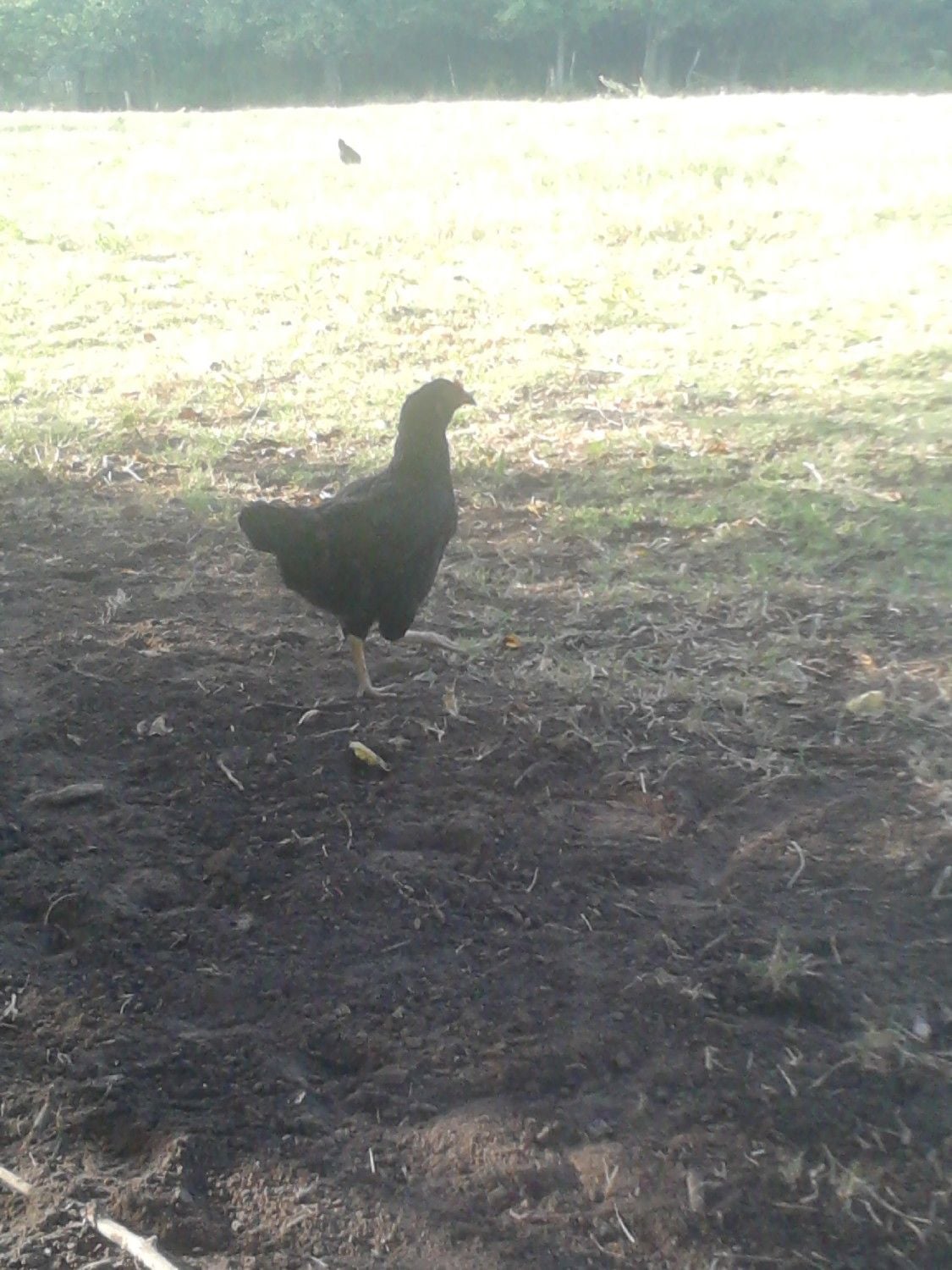 She's a chunky pullet, for sure. She started laying Aug. 22. They've been medium to jumbo size, one double yolk so far. Never know what she'll do, but usually lays daily. This one is after she skipped a day, so I'm betting there's at least 2 yolks in there. I forgot to count chickens before I opened the nestbox lid. There she was laying this sucker! It was like I'd walked in on someone in the bathroom while they were going number two. I got growled at, but hardly blame her for being cross.