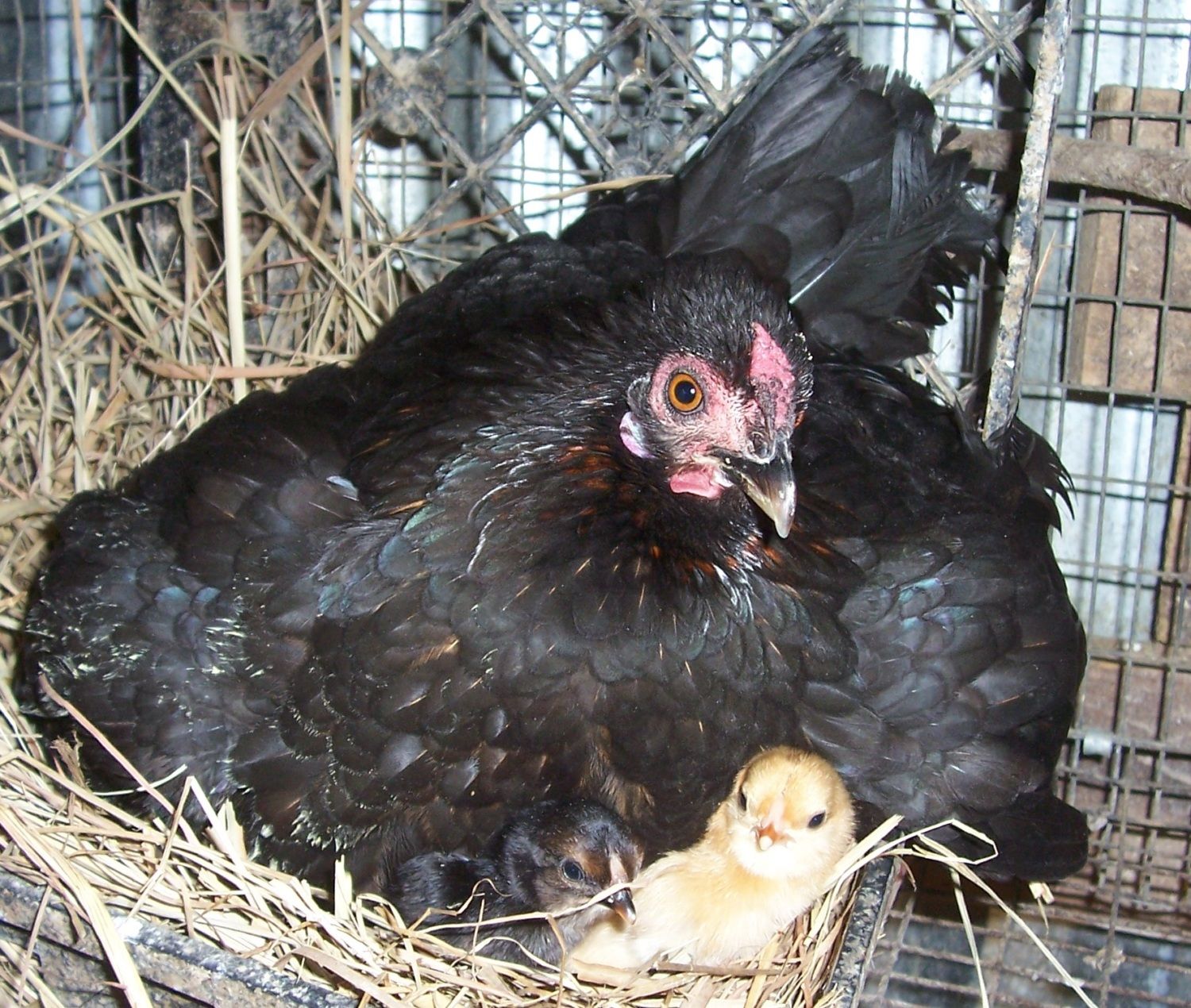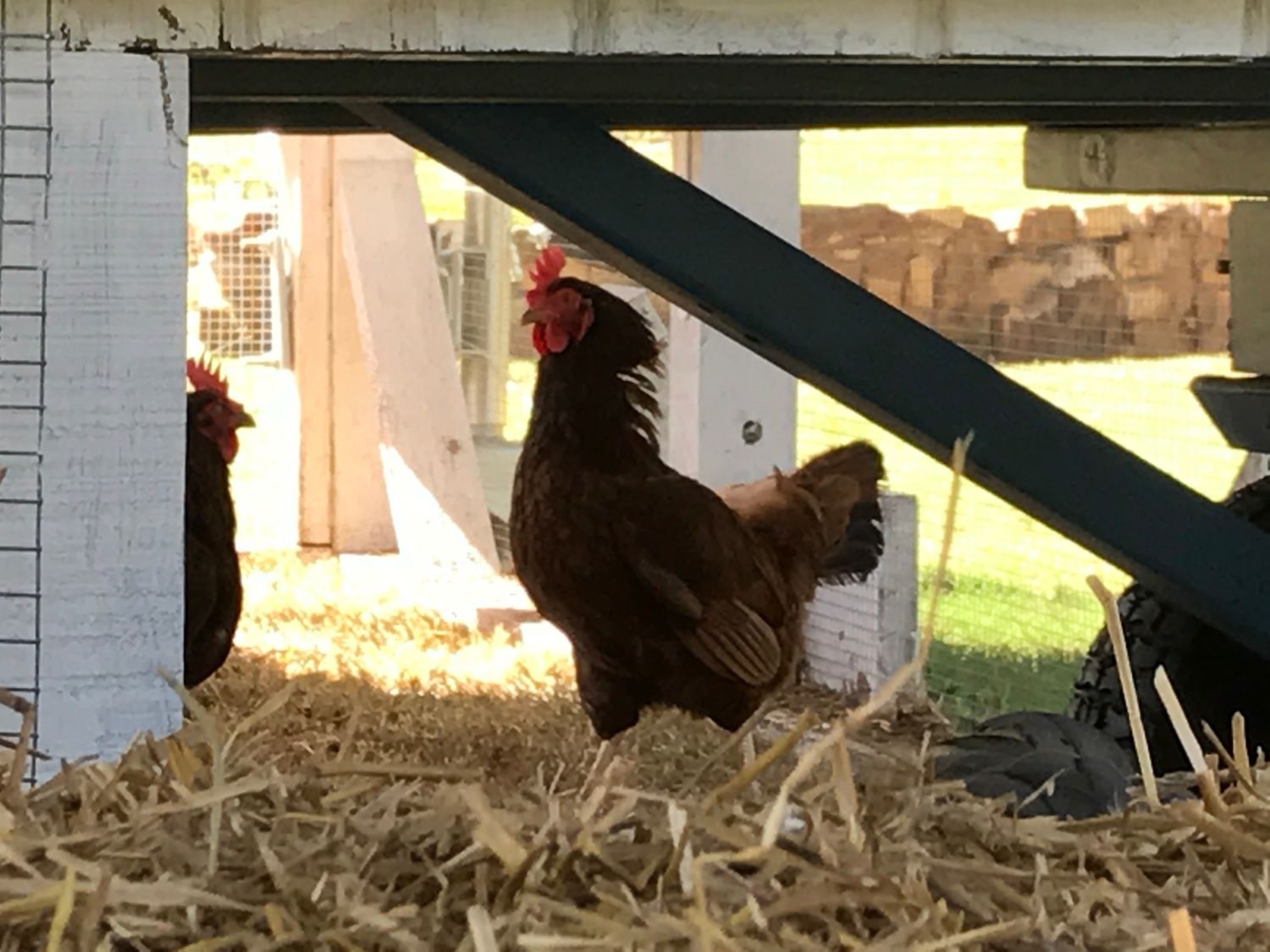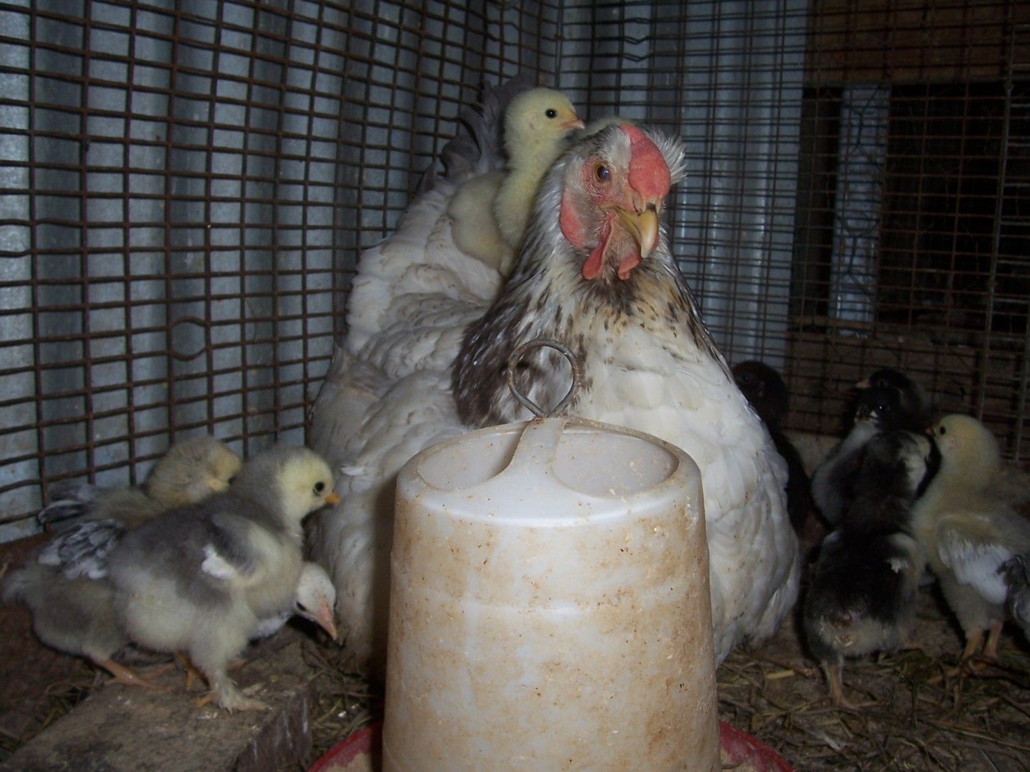 We had a scare this evening. I had just finished in the hen house and was beginning to fill the feeders in the outside pens. All the pens were open as all birds were still free ranging and/or returning to their coops. Suddenly there was a HUGE ruckus going on in the hen house in the barn....where the layer flock and brood hens are located. I ran back to the barn thinking there was a big fight going on because hens are squawking and chicks are alarmed and birds are fleeing the hen house thru all doors. As I started thru the human door to the hen house ANSEL is flogging a hawk and has the hawk down on the floor jumping all over him...not a big rooster in sight. Just the mighty little Seabright. I grab a hoe near the door and make the final blow. Ansel jumps on the roost and crows in triumph. It was a sparrow hawk with a 20 inch wing spread...granted Ansel outweighed the hawk, but the hawk had talons and a vicious beak. It took a while to settle the moms and babies. Even the mothers inside brood cages had been slamming their bodies against their cage walls to get out. Fortunately no one was injured. I checked Ansel thoroughly for any sign of injury...not a scratch on him. What a great flock protector!