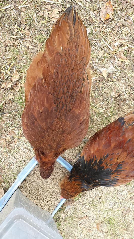 I wanted to share an update image of my hatchling! This is the Speckled Sussex roo x Production Red hen baby, hatched June 1, and she hatched with Spraddle Leg. She's a pretty big chicken for being 4 months old, and is already larger than the adult australorp I've got. I love all of her reds and the pencil looking markings on her spine. Her mom has a white feather base while she's got the smoky, ashy black color. She's such a good chicken, too. I can pick her up and she sits on my hand, and talks to me while I talk to her and pet her.