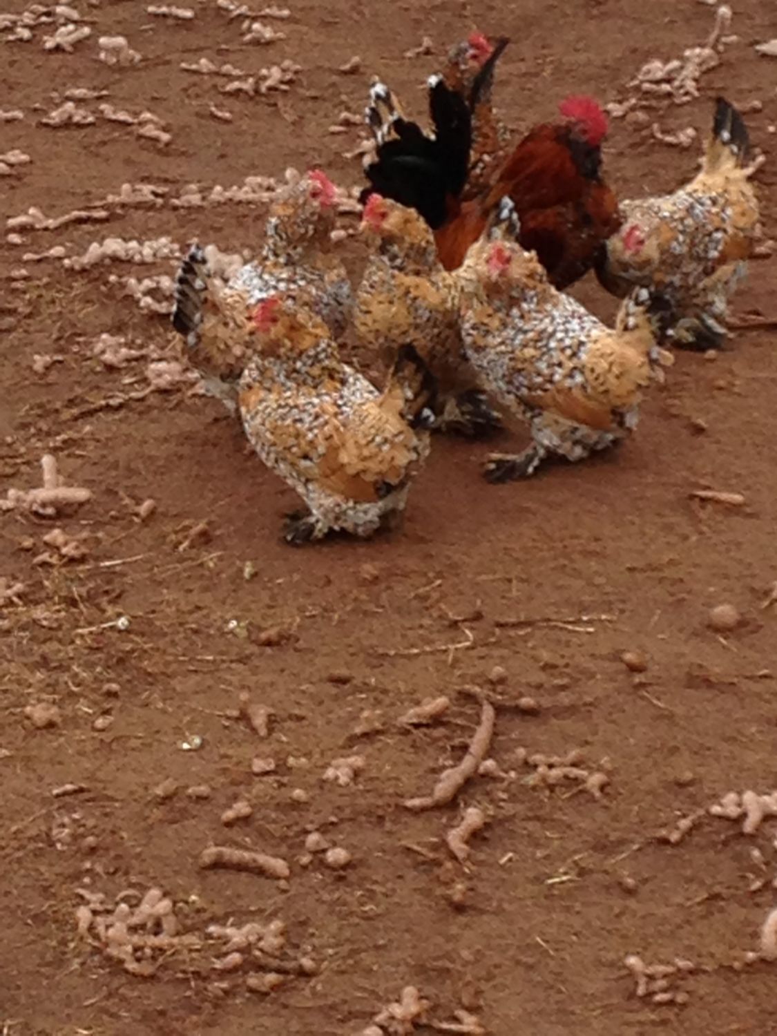 4 of my Buffs are completely bob-tailed right now. There's only one of my 6 that doesn't show obvious signs of molt yet, but she's got a few feathers that are starting to lose color and turn out. They just look so funny, but still thankful none went bald. I miss the eggs, but I know my patience will pay off in the end. By the way, I bought a dozen cage-free eggs from the supermarket that are dark reddish brown. They look like Welsummer eggs to me. I didn't think Wellies were used for commercial laying, though. Who knows...