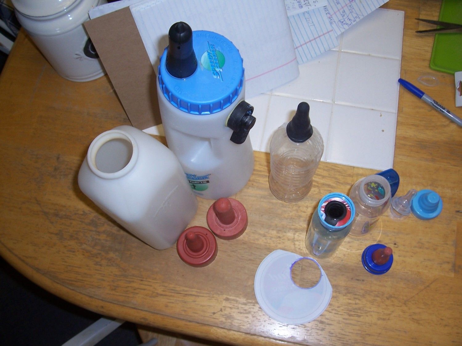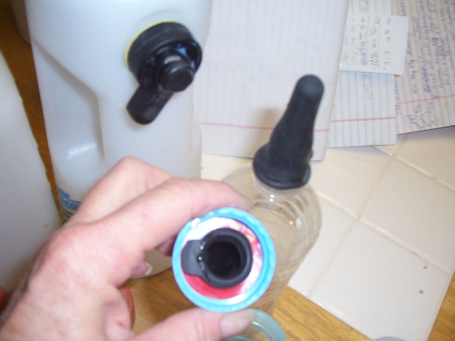 The necessity of dealing with the premature calf Velvet has made me the mother of invention. The regular calf bottle nipple was too big, the 1/2 gallon bottle for the small calf nipple was too cumbersome for the small feedings Velvet needed. A goat nipple came off the pop bottle too easily...so I took two plastic human baby bottles and cut down a small calf nipple to fit one and trimmed the goat nipple and added a plastic washer to hold the nipple under the cap for the other. Voila! Two bottles that will each hold 9 ounces of milk and be much easier for her to suckle and us to manage. Should make feedings a little easier.
