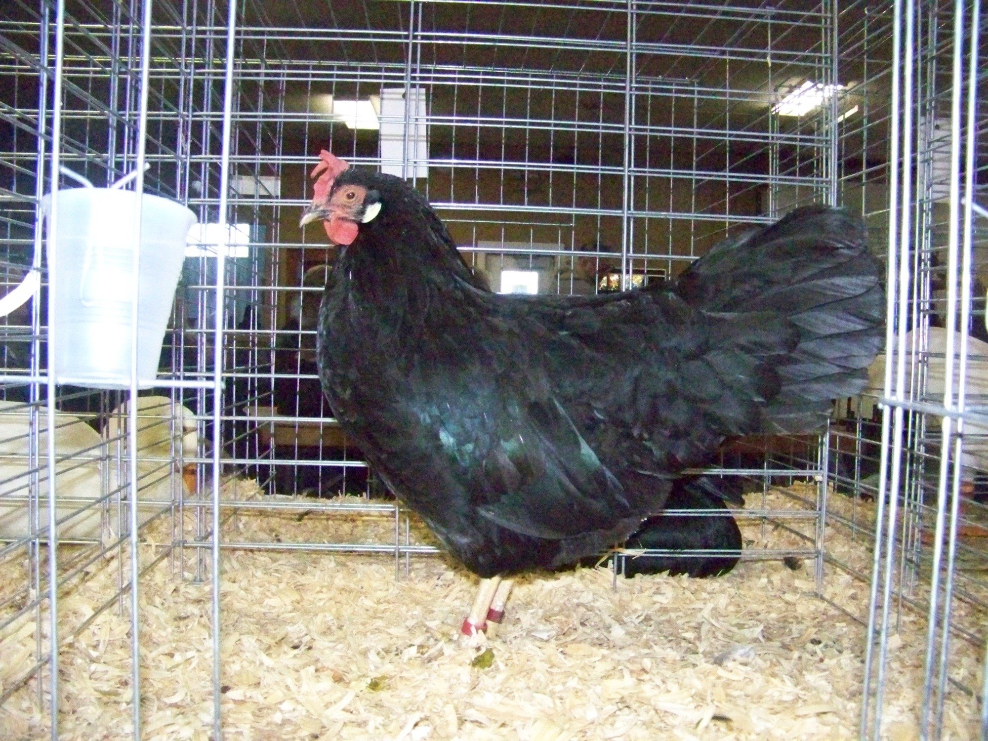 The male black Leghorns, when they have nice yellow legs, also have white in their tail feathers...usually at the base of the sickle feathers.Black Leghorns pose the same problem. With our Anconas, we keep the black to a minimum, but clean yellow legs? Oiweh!
