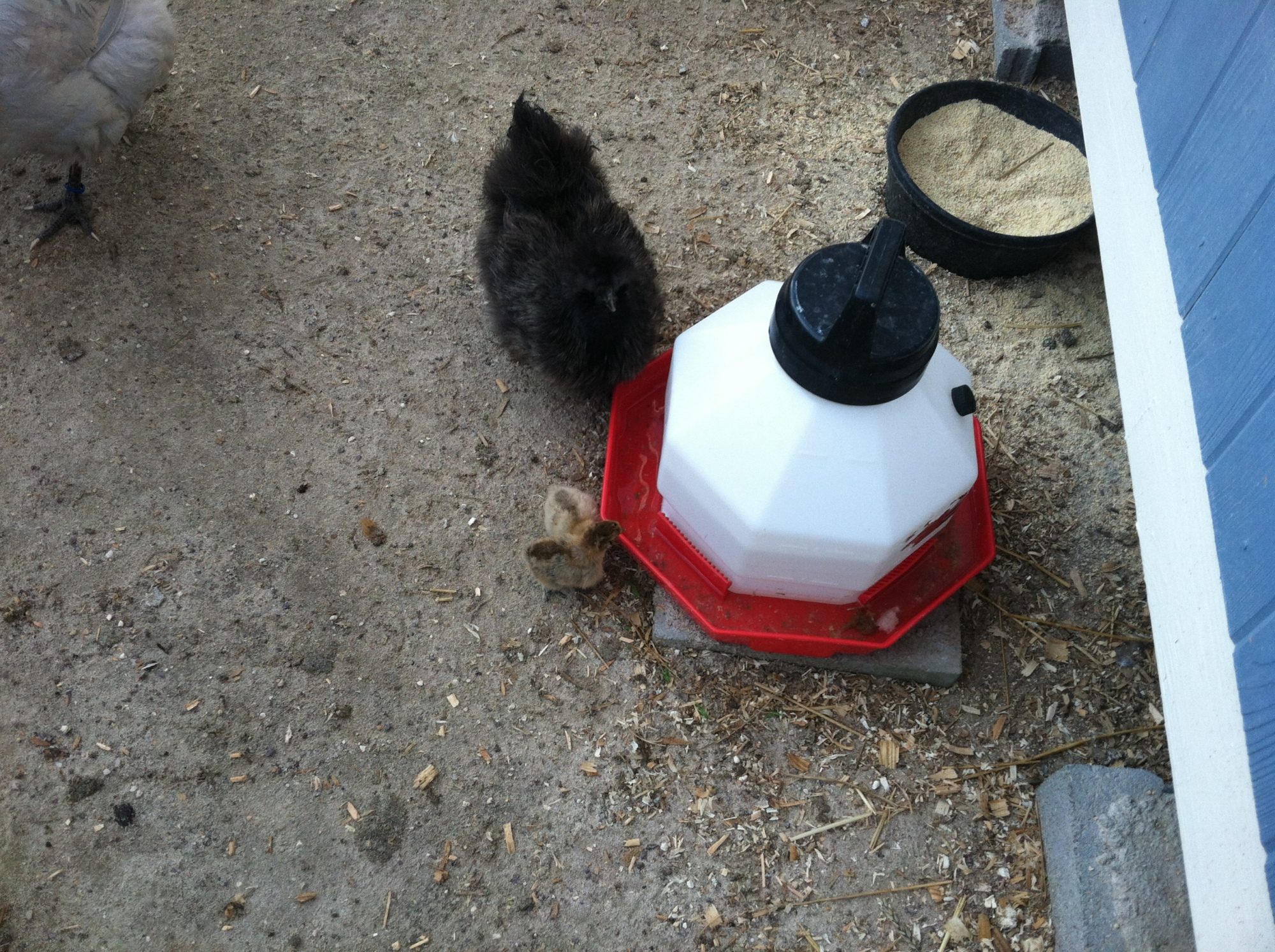 You can keep them together if they get along - otherwise I would separate them. My two broodies were separated by a landscape fabric curtain to hatch their babies and now they are doing their best to avoid each other. haha. These two never got along and Smokey keeps going after Topsy every chance she gets. Topsy is the kindest, gentlest mother around. Smokey - a force to be reckoned with! I would definitely put out bowls of food and water throughout the area and close by the momma/babies until the babies are a little larger. What happens with my flock is the bigger ones get to the dish and momma/babies are having to wait until the bigs eat most of the food. I would wait until the hens give up on the eggs - usually what they will do is get up and leave the eggs unattended for a long period of time - or sometimes they might make a new nest near but not on the eggs. You can always candle the left behind eggs. Most likely they won't be any good anymore.