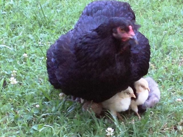 Those pics are so awesome, aren't mama so tolerant of their little ones.I am SO thoroughly enjoying my first broody, Onyx, and her babies. The babies are fearless around the rest of the flock. Onyx is such a good mama. Here are some photos I took yesterday: