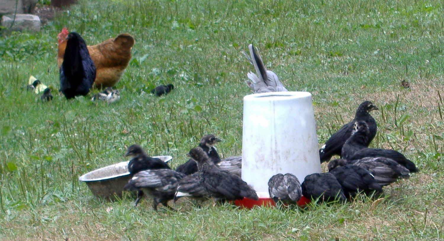 One hen was broody for 2 weeks before we could get her eggs. She lasted until day 19 when I came home to cold eggs. Gave the eggs (candled and threw out 2 eggs) to the broody #2 who took to them like bees to honey. Broody #1 apparently still wanted to be broody so both are hatching eggs. 4 have hatched but I could not prevent 1 from getting in with the other chickens so one died. Three dry babies that I know of. They were dry when I saw them for the first time. One with furry legs!