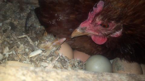 well a baby chick died then another hatched and one is oh most out right now and another is pecking the shell to get out these ones i have in my room no bator nothing and one hatched and another is hatching no broody just me doing all the work so 5 out of 8 eggs but two eggs broke so thats a good hatch for my first time and im doing most of the work