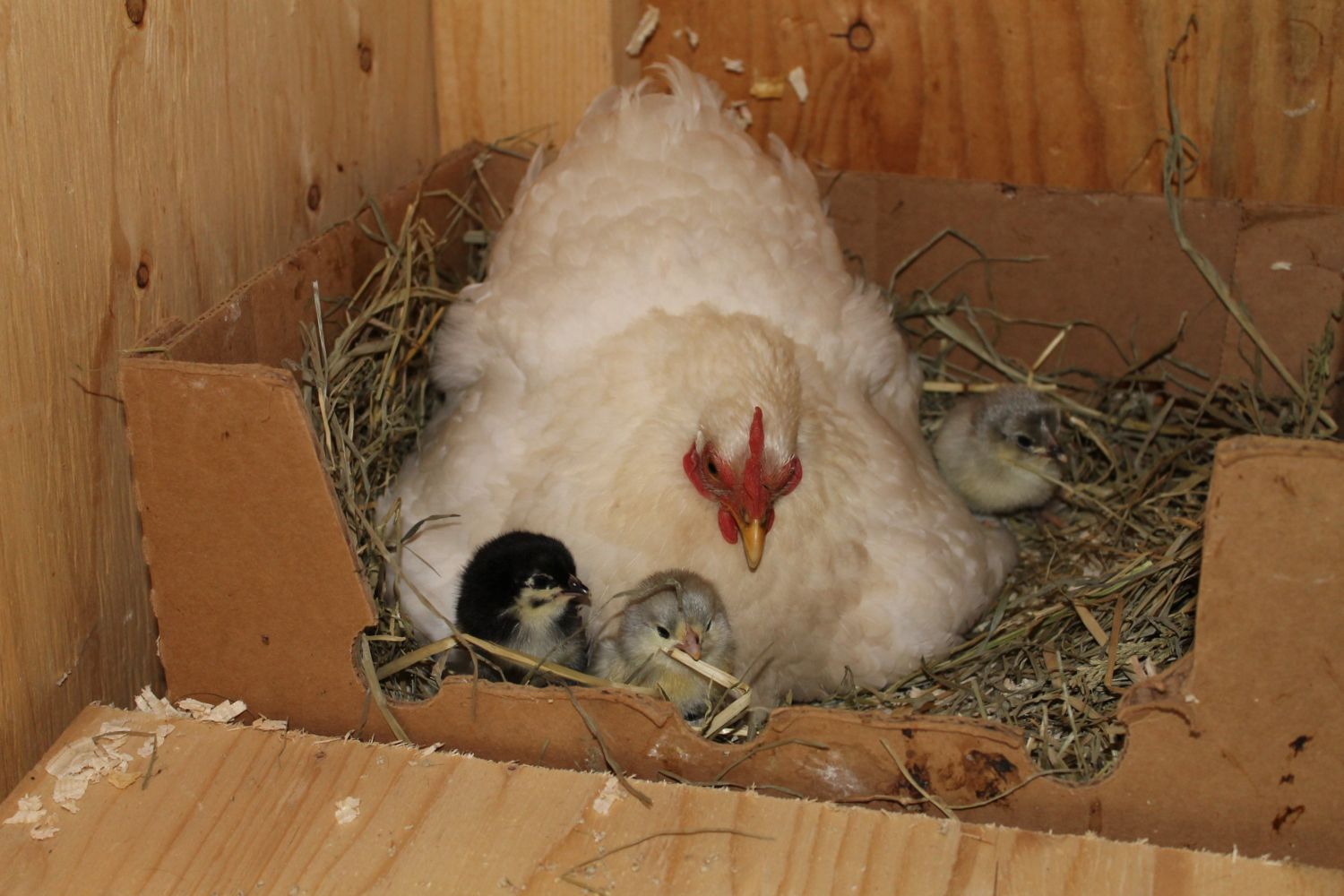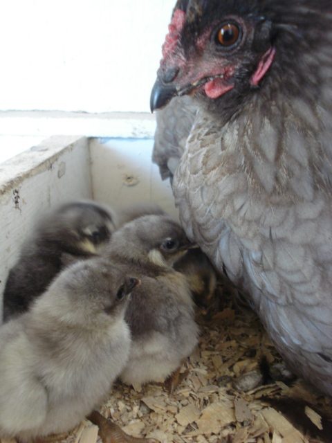Well, my olive egger now has five little chicks under her. They hatched yesterday, I gave them to her in the middle of the night, and this morning she was very content with her new role as a mother. I took away her fake eggs, and she has been broody for almost a month. A first time for her, though.