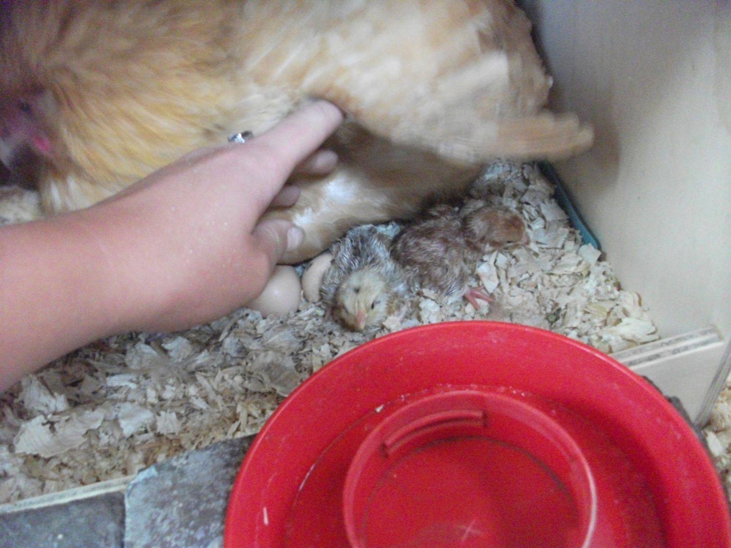 I have another broody sitting on eggs on the other side of the coop, she has kicked out several so not sure what her hatch rate will be, but most of the chicks from both will go to a home with a nice gal who lost her birds from coyotes. i had two broodies and thought well why not lol, this way they got something to sit on and it benefits the gal and I since I'm keeping 2 for my own flock.