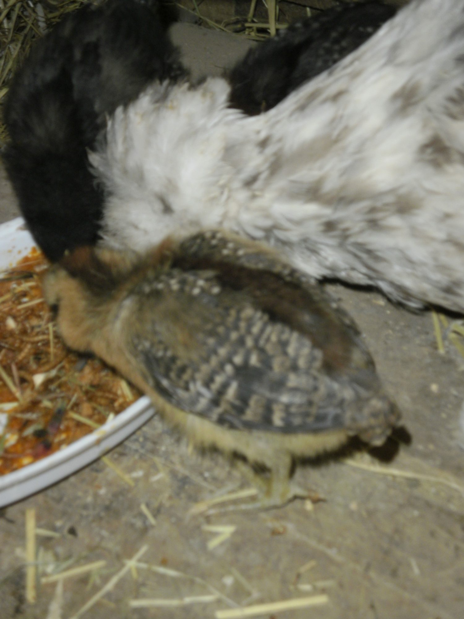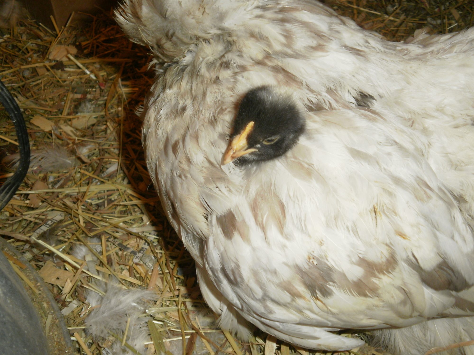 My silkie, Janice, hatched 3 BRs & 1 EE.