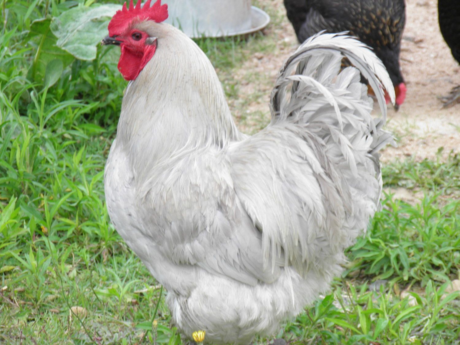 Here is my lavender orpington roo.....the daddy of all my mutt chicks.Well, 8 eggs hatched, and Mama got up. There were three eggs left under her, all pipped and partially zipped. The first two hatched, and I put them under Mama. The third was almost completely zipped, so I picked up the egg and put it under her. I had just gotten it on the ground under her when the chick pushed itself out. So, 100% hatch (11/11) A few minutes later I saw one of the new ones out from under her, and she wasn't interested in it going back under. So I checked it and it was cool....and still wet. So I took it and put it under lights, warmed it, gave it Quik Chick with a little sugar added. It became more active, up on its feet walking without apparent defect......and cheeping because it was all alone. So I took it and gave it back to Mama. When she showed no aggression, I put it part way under her and it squirmed itself out of sight. Time will tell, but I am so pleased with the hatch.....and Mama is eating with a vengeance![]()