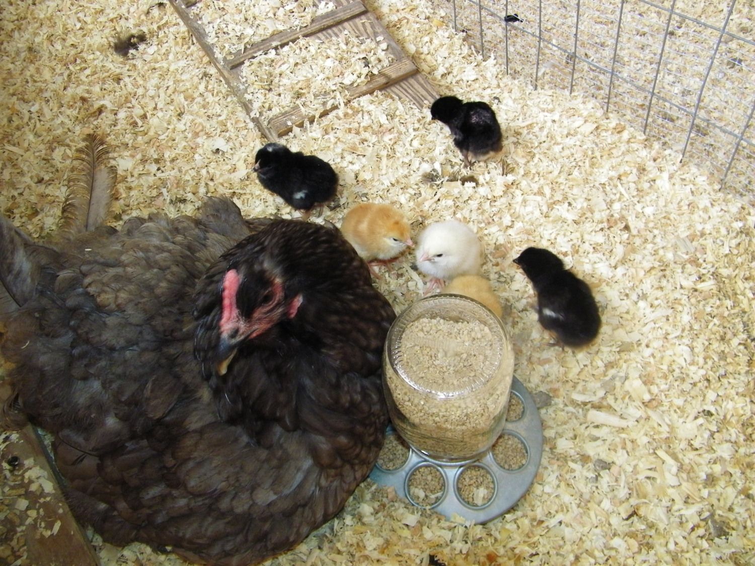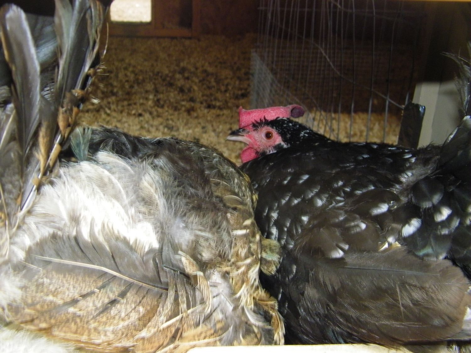 HI,I went to close the coop up for the night and Lacy and here two chicks, Stanley and Abbey were no where to be found. I freaked out cause I had just put them in with the flock 2 days ago. Turns out that she had gone to roost with the others and the chicks were tucked under each wing. That roost is 3 feet high, but they got up there. So how long will she watch over them? No one seems to care about them at all. They already seem to be part of the flock. 3 weeks old now. Also I know nothing about genetics, my question is. I have all blue wyandottes. so how did I end up with a white chick? Thanks for any info.