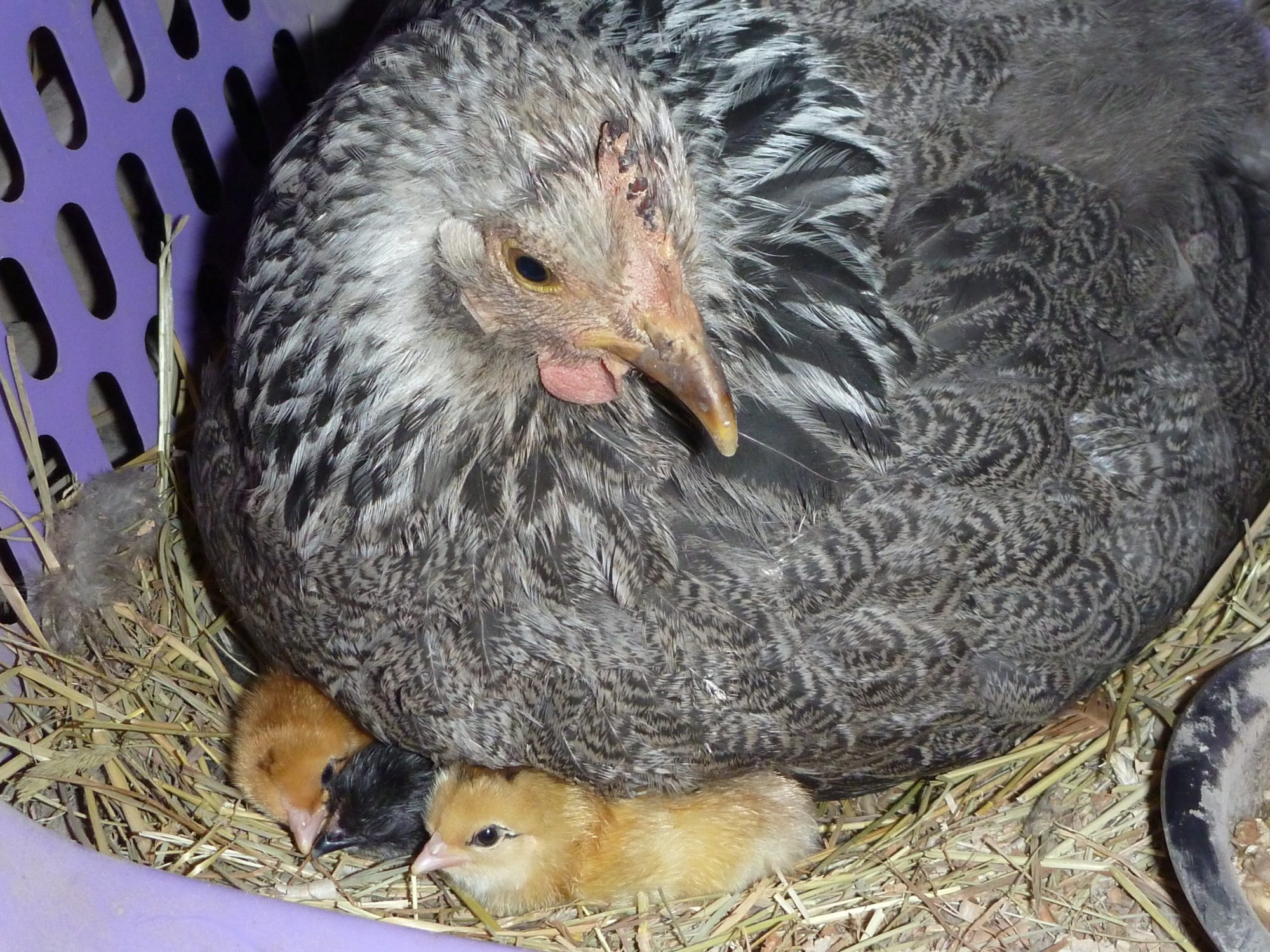 we have a total of 5 broodies right now... Rosie has her 3 week olds... Frannie is due next week... Gracie is waiting for eggs and Connie and Bess hatched Friday night to Saturday morning.