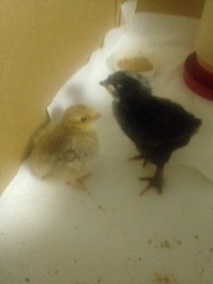 This is day 1, drinking from a dropper and day 2 with his new buddy, a silkie cross.