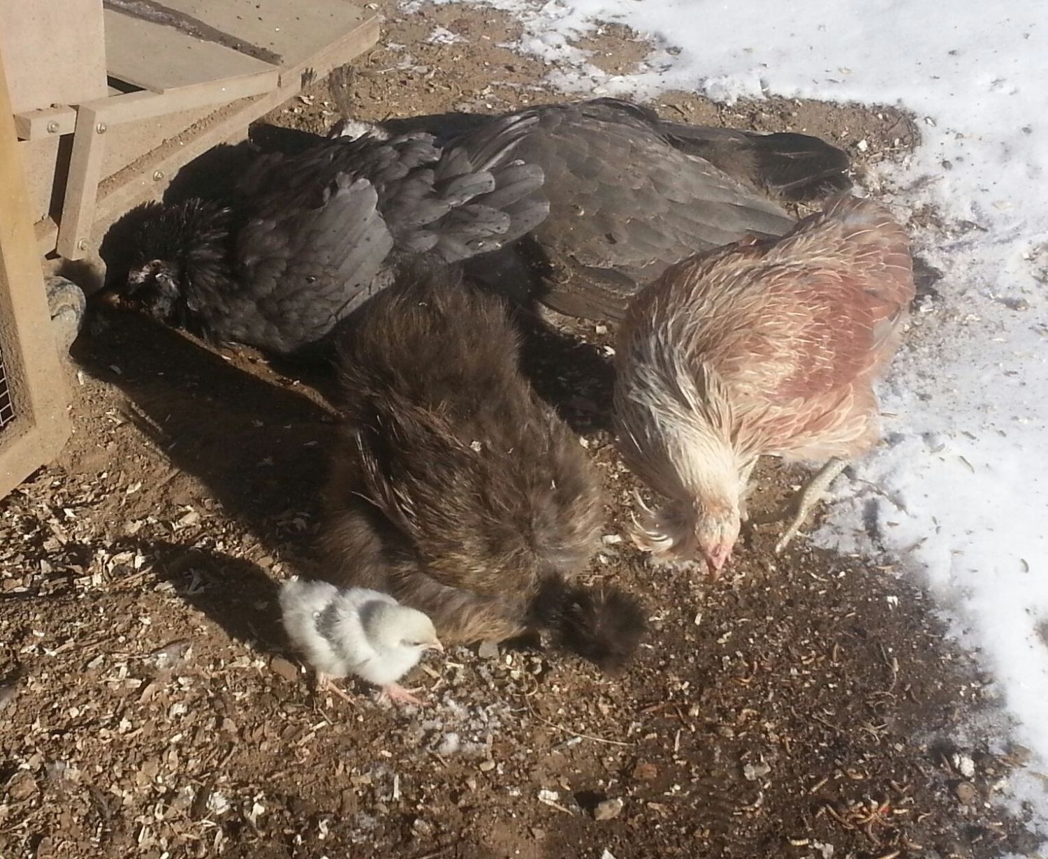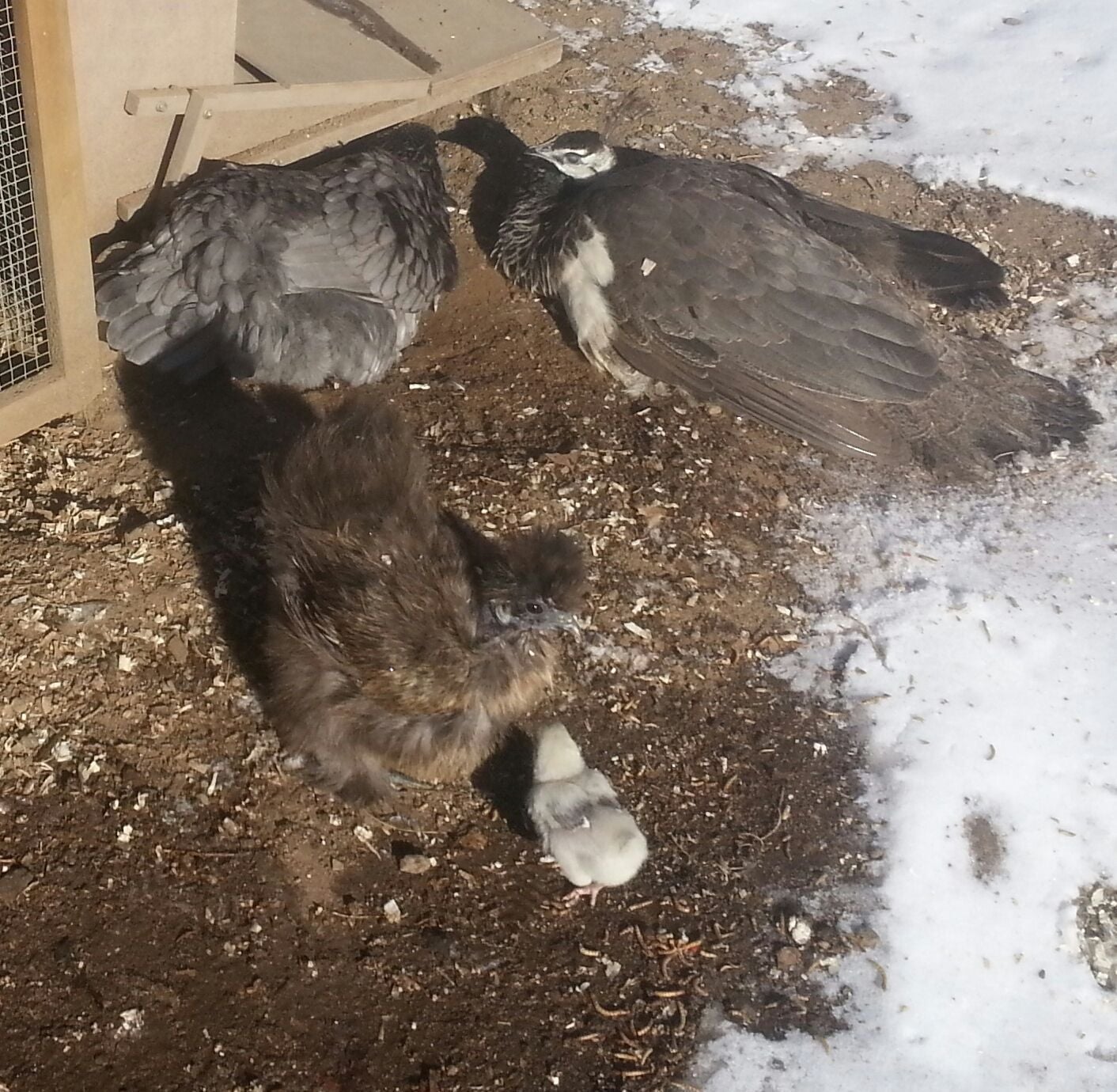 Very sweet x3....I love watching them this time of year. Totally blows your mind after you've worked so hard to heat lamp brood batches, stressing over keeping just the right temp...momma just lets them run around in their little down jackets, then catching quick warm ups with momma. Very sweet.