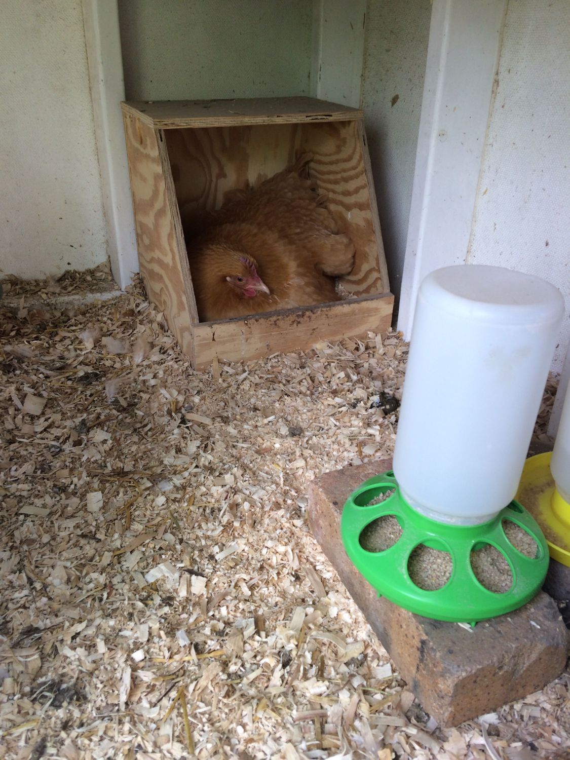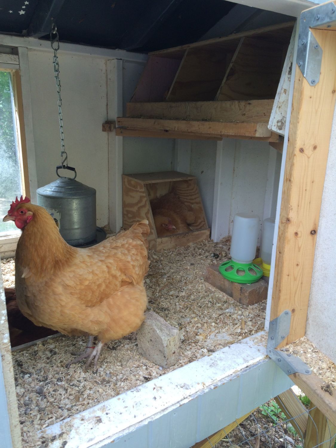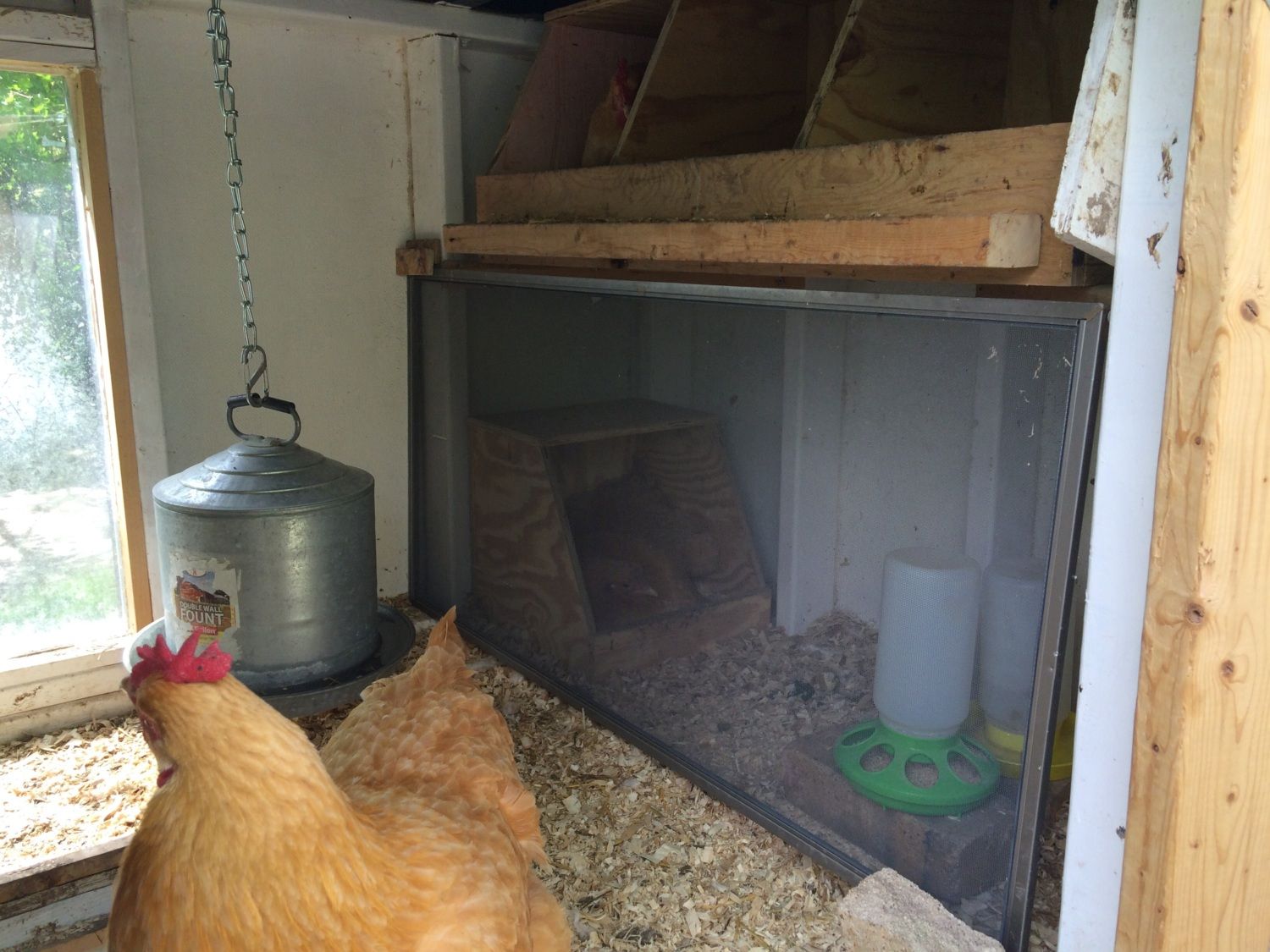 Looks like a great set up!Update on my broody: she is still broody and has 13 eggs under her. She has been very diligent and she only has 6 days to go! I know there are different opinions on leaving a broody in the coop or separating. I've chosen to leave her in the coop. This is mostly for my convienience I must admit. Here are some pictures of her side of the coop. I use a window screen to keep the other chickens from bothering her.![]()