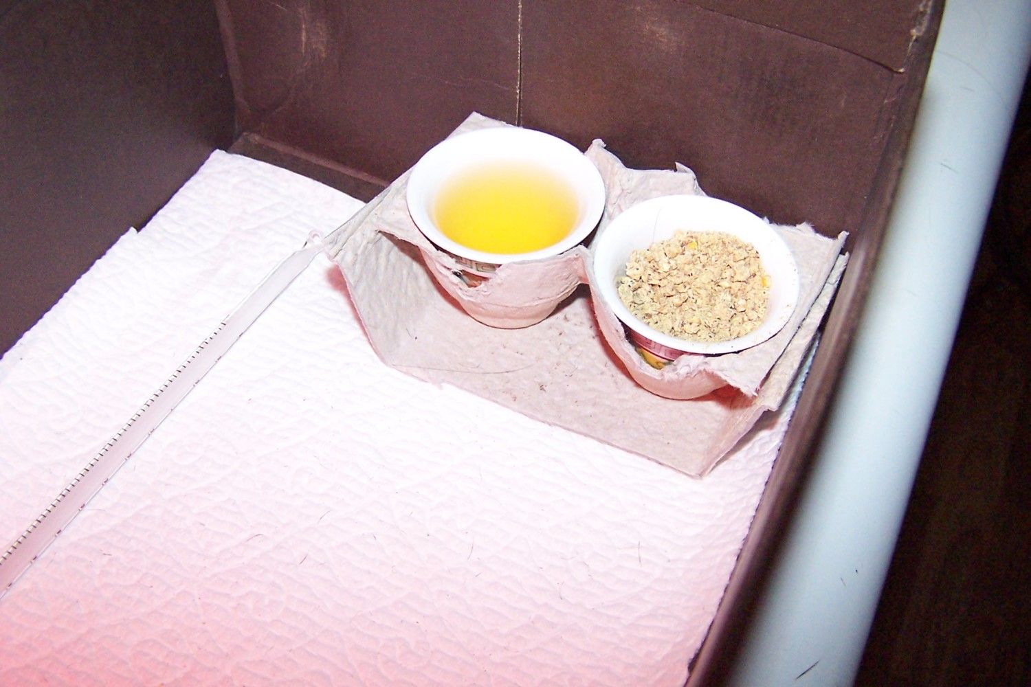 I noticed my tea sets I keep on my window sills and pulled these child size Japanese tea cups...cut off a section of egg carton...and voila...emergency ICU chick size water and feed bowl that won't tip or risk drowning perfect for ICU chick