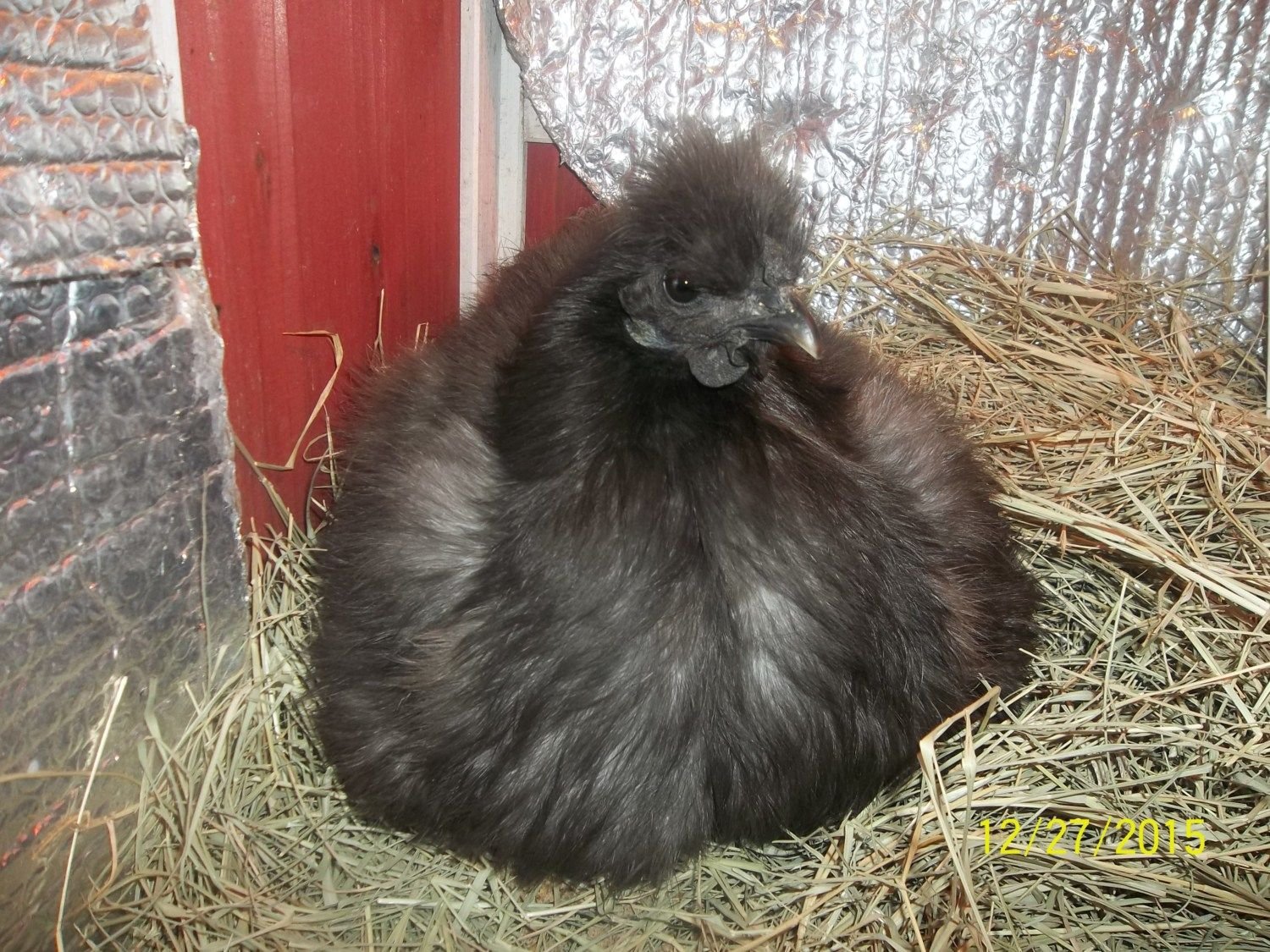 There are 6 of the cutest Fuzzy butts in there with her now. But it is cold so she keeps them mostly tucked in.