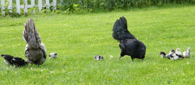 I kicked everyone out to free range and closed the run door. Then I opened Smokeys door because she kept bok boking. She flew out ran around a bit then got into the big side of the coop. The babies went wild screeching. I put them over with her and they settled down. But the I moved them all back over. The roosters leave Monday or Tuesday. After that I plan to move Smokey and her babies back over to the floor of the coop.