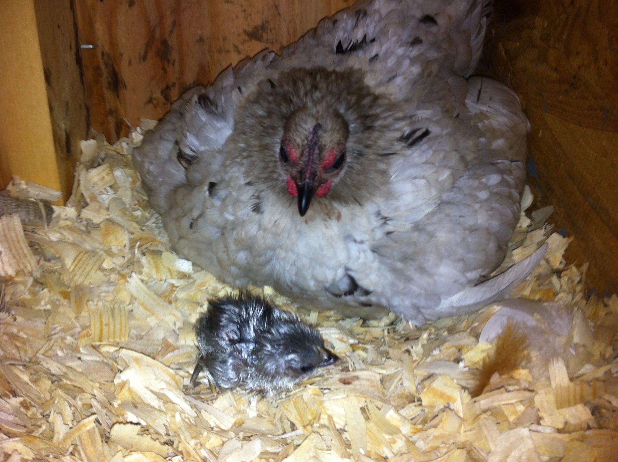 Tomorrow should be the day!!! Except I'm down to two eggs--one...was eaten? and one of the remaining eggs disappeared at that time but came back the next day (must have just been lost in the bedding. Anyway, I only expect one to hatch. I'm hoping I can buy day olds next week to add, so Laura isn't 'out of commision' so long to only gain one chicken. Sound like a plan?