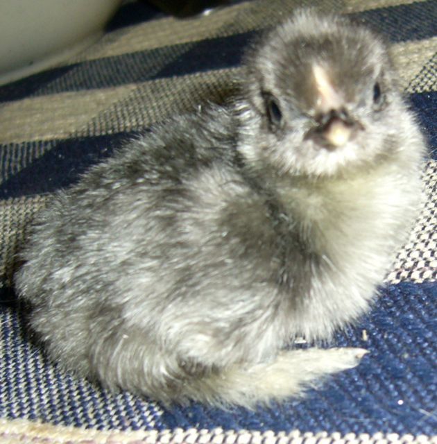 another pic of my surprise chick- mama broody is a cochin, i gave her some bantam faverolle eggs, due to hatch Saturday, well, she snuck this one in- and the roo is a cochin, so i think he will be the different one...LOL!