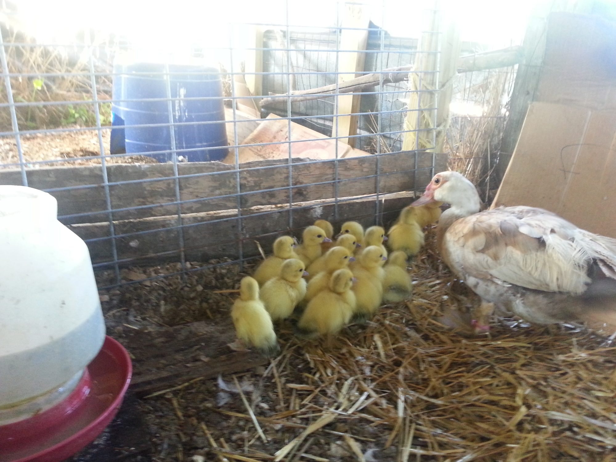 I still can't believe that she was able to hatch out that many. I had been having a problem with my younger drakes and twice found her off the nest with the eggs scattered around and kind of chilled. The extra drakes went to the freezer and apparently all was good.