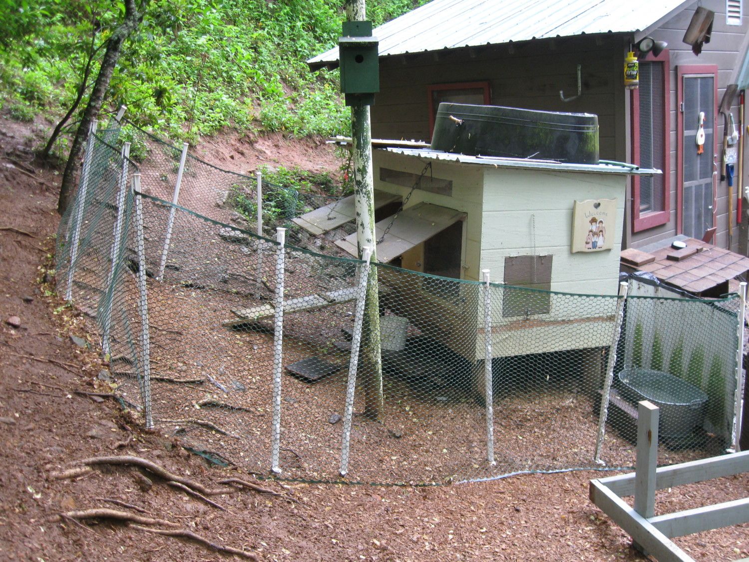 Construction sites are a great place to find scraps of left overs, My son worked on a construction site 3 yrs ago and that's how we built our last duck house you can see it in the back ground,. Most of the time they are going to carry it off to the land fill and will be happy for someone to take it off their hands, just be sure to ask not just stop and help your selves. lolI'm excited too! I forgot to mention, when I say it's not fully enclosed, I just mean there's only a 3-4 foot fence, but there isn't a roof, just a cloth mesh over part for shade. And no door. I love my boyfriend to death but come on, how do you forget a door?![]()