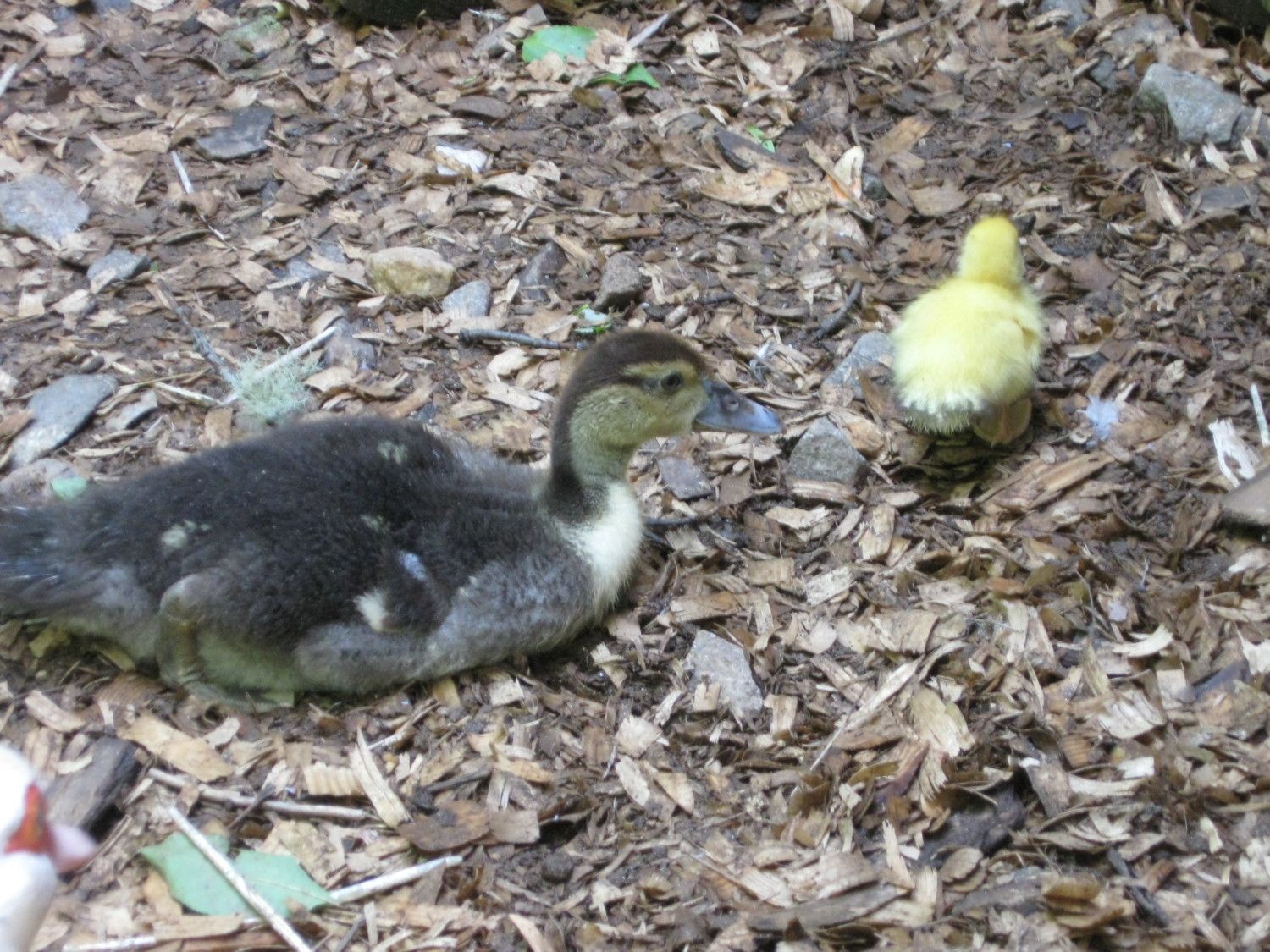 So lil duckling came out with Mama a little while ago and Papa goose was standing by and granma Lydia was having a nervous breakdown Baby didn't know who mama was with so many feet to look at started following the chickens with the 3 of us hot on its tail; I finally managed to get them back together and inside till threat of Blk snake is over for the day. Whew I don't know.
