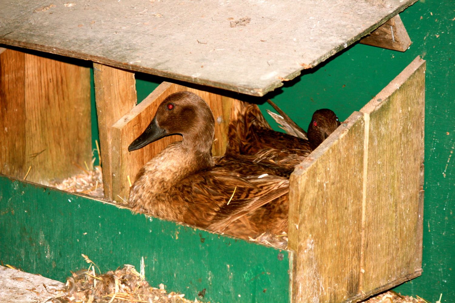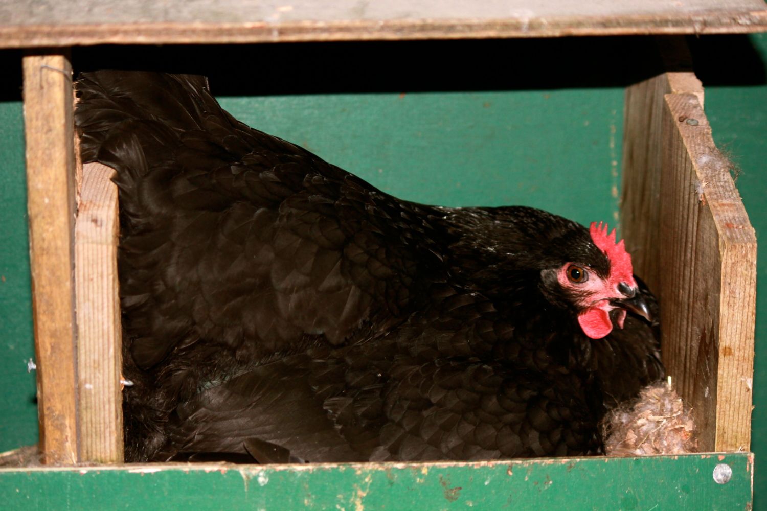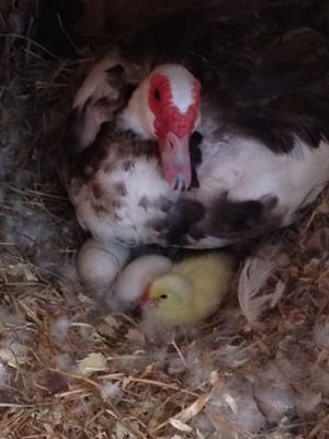 (If you have time for a story - This girl was sitting on the eggs with one of the ducks originally. First it was one duck then it was two then it was a duck and my girl here and then she decided she wanted a nest of her own and is now sitting a few nest boxes down quite contently and the duck nest is back to two ducks.