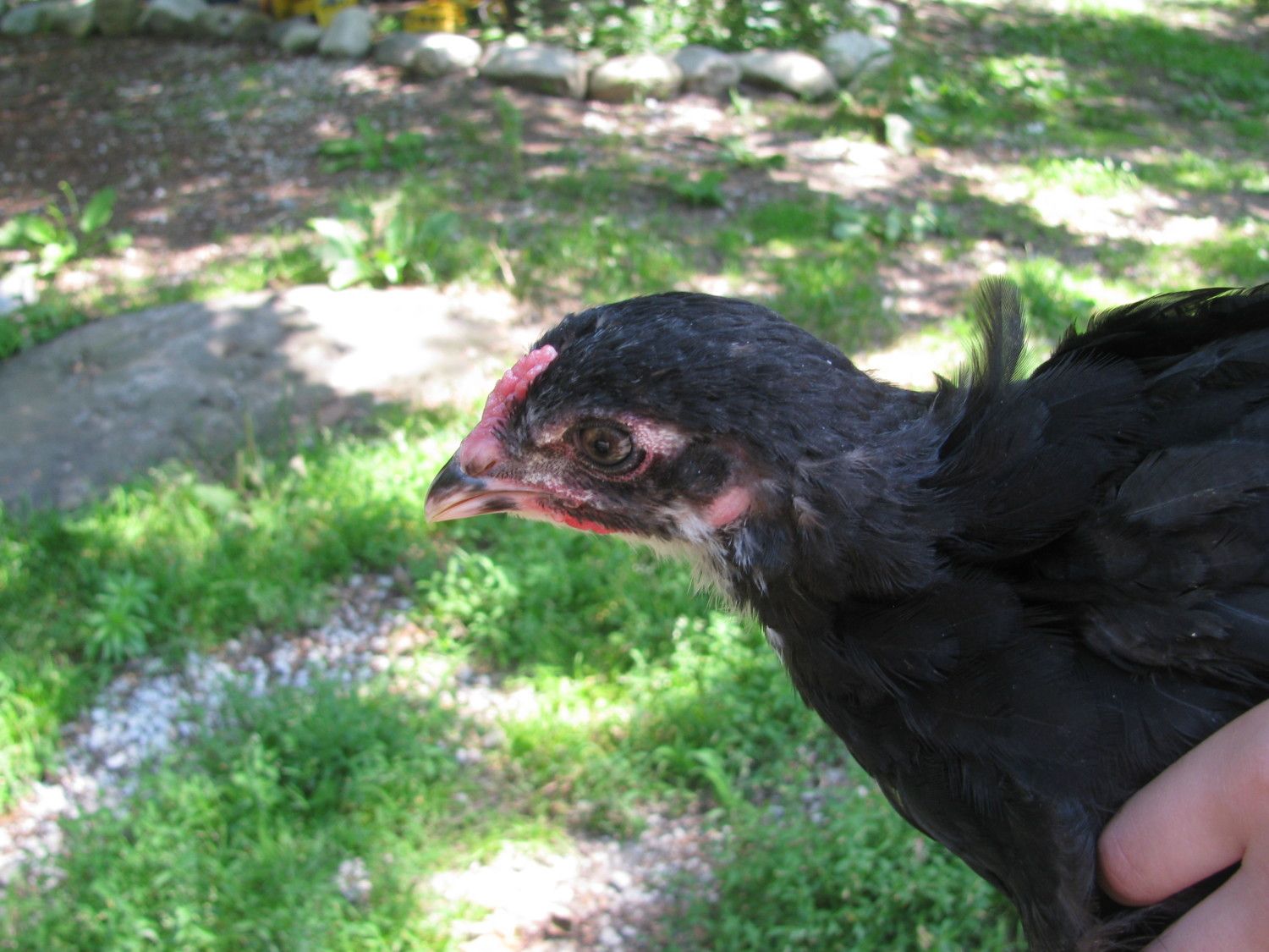 The man I bought these from said he would exchange one for me that has a pea comb. So since he was driving through my area today, we meet in the next town over, and made the exchange. Since it was in a busy parking lot, I didn't want to take the bird out and inspect too closely and risk her getting loose. So after we got back in the van, (and he had left at that point), I took the bird out to look it over. IT IS A BOY!!!!!!!