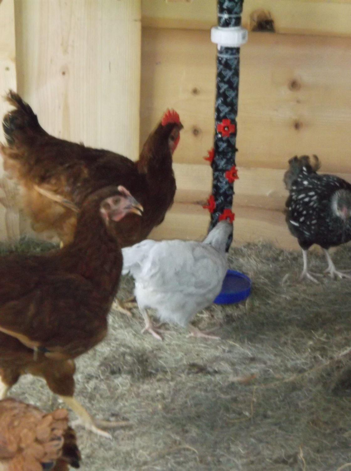 Well, that's a different setup...thinking 'outside the pipe'....will water all heights of chooks.