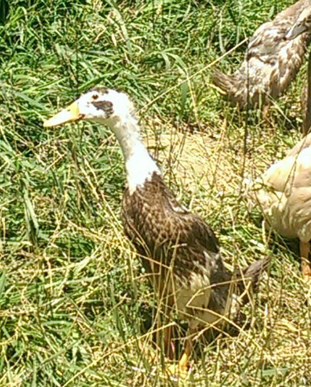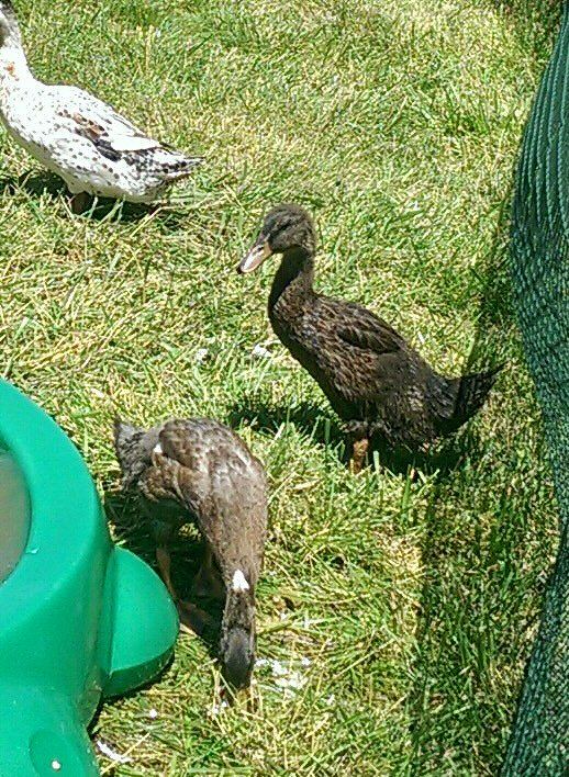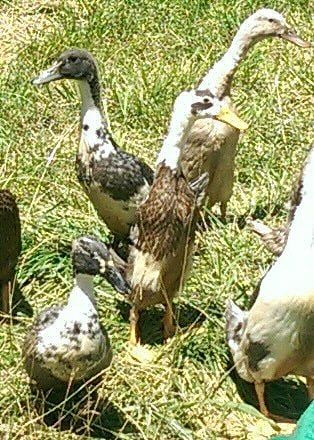 Also, in my latest batch of ducklings, two turned out with a mallard/Rhouen coloration, even though I have none. Im assuming this is a latent gene. Most of the ducklings are either Indian Runner or Ancona/swedes. A few may have Saxony lineage. My hens kept depositing their eggs in my Runner nests. So are they just a regular duck with malkard coloration, or how does that work??? Here they are. You can the ones im talking about in the group.