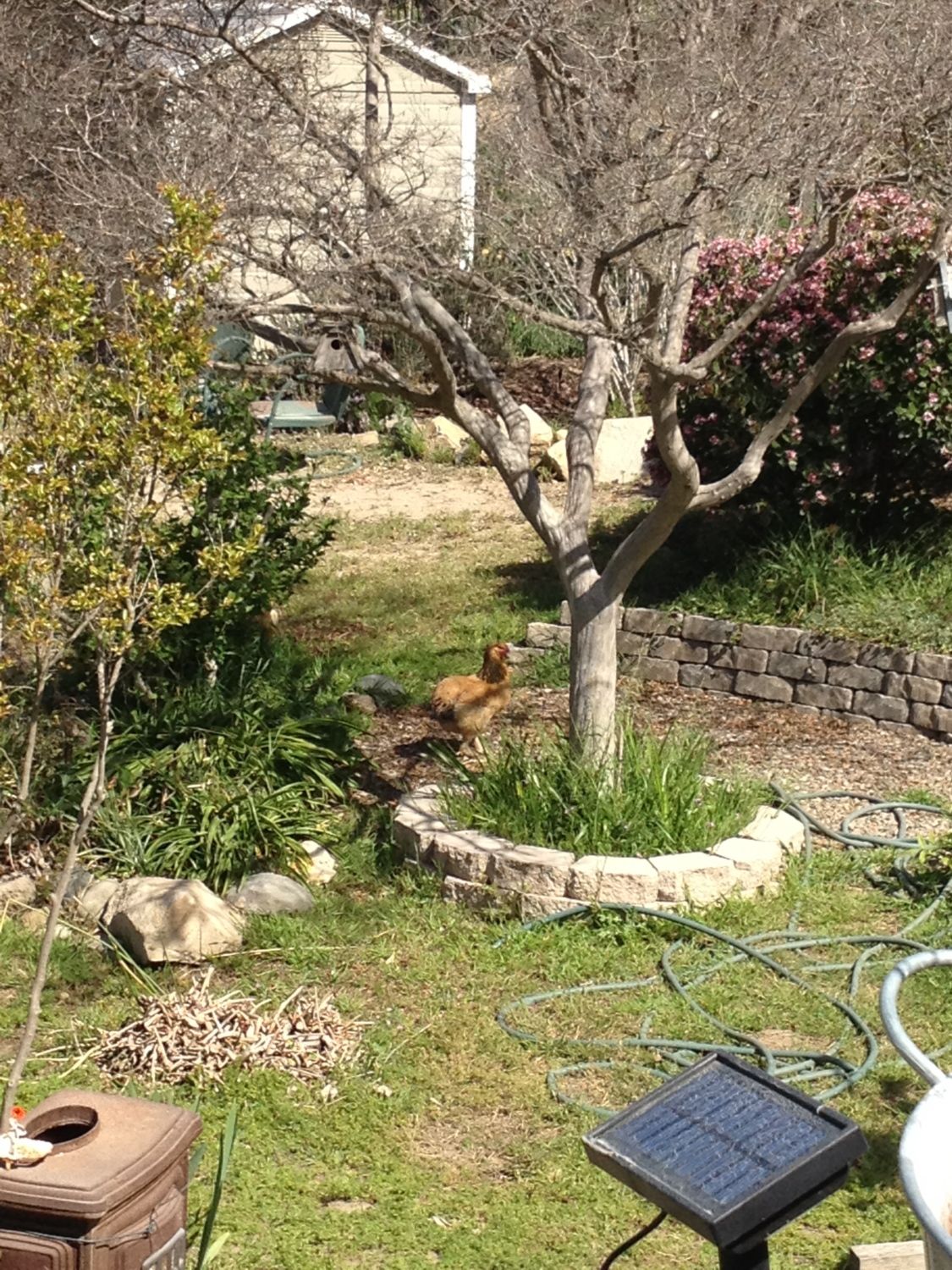 It's funny how my rooster just can't relax. Every few seconds he would run over to this hen or that in such a frantic way. I just just see him keeping an "eye" on them. I swear the hen furthest away would cackle just to tease him.