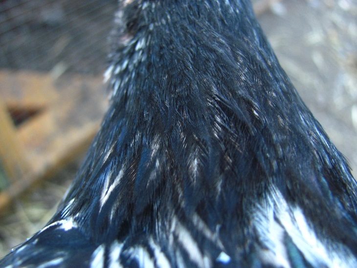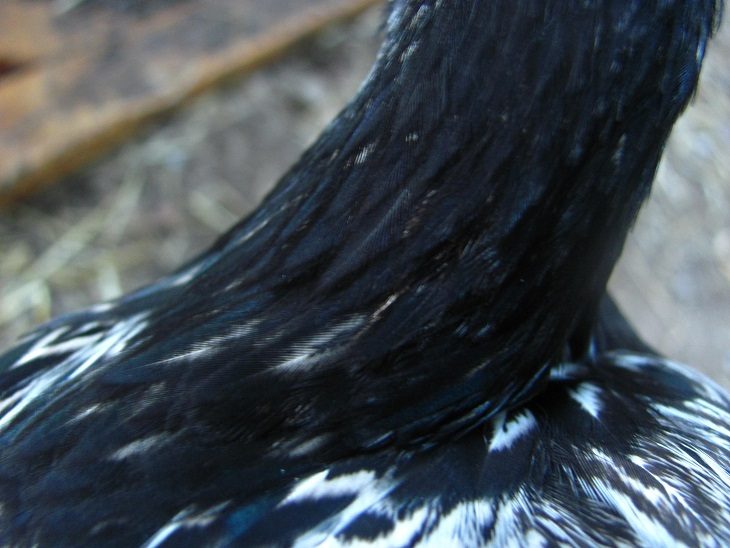 Anyway, these birds really all look like pullets to me and I have no idea who is crowing. I'm perplexed. Here's head, comb, hackle, and saddle shots of each. Any clue? The purple chick is slightly redder, but with such a small comb at three months old, how on earth could she be a he?