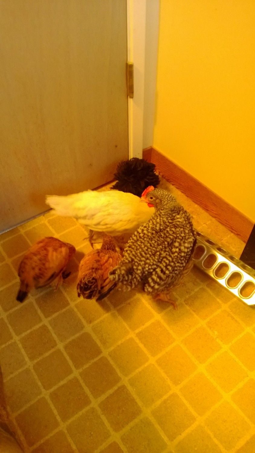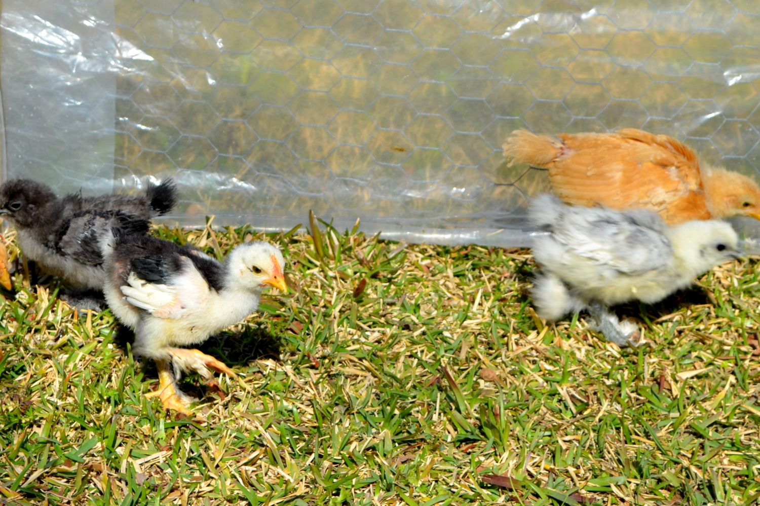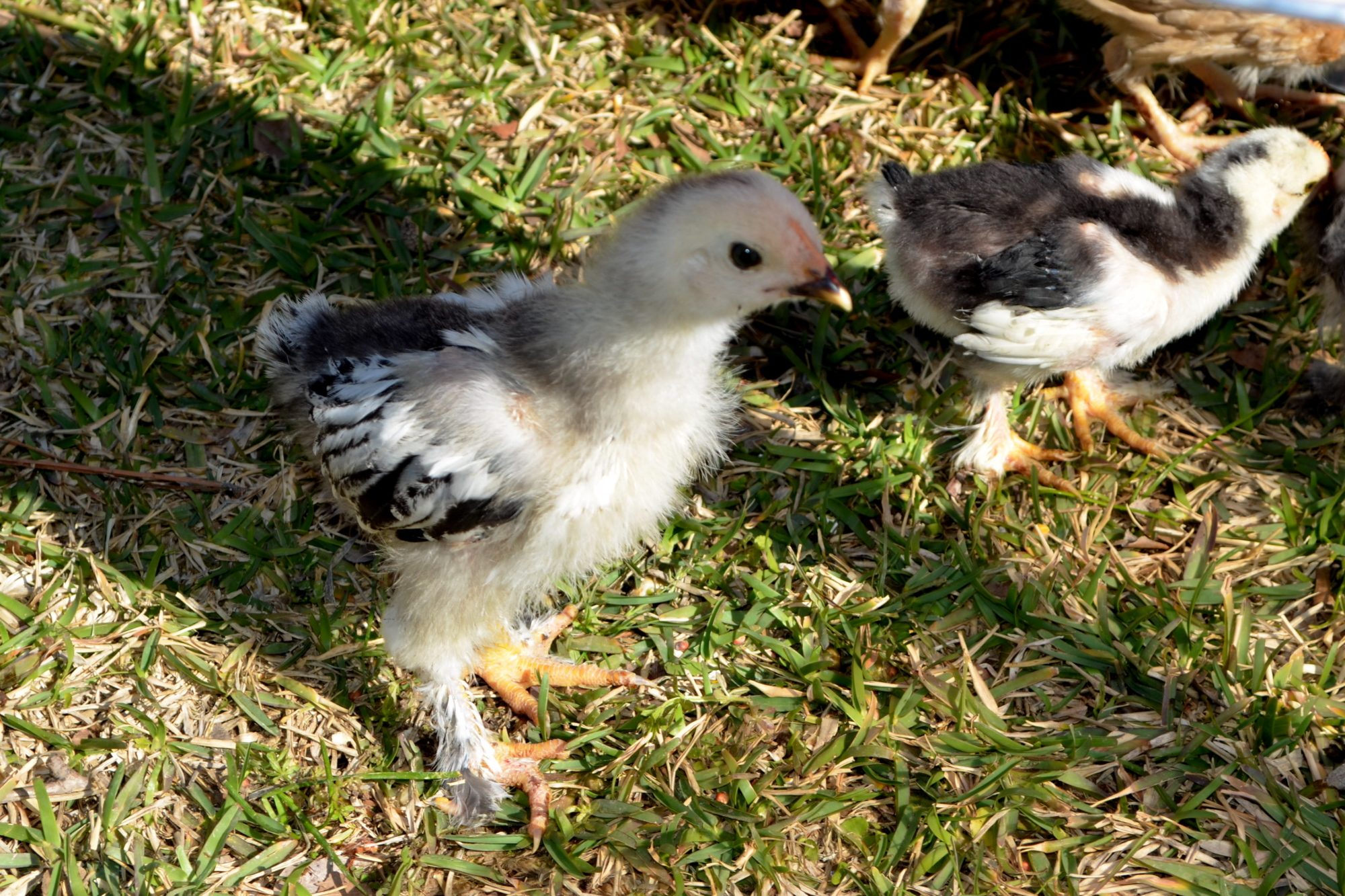 This little one on the left hand side too. It's getting feathers much slower than the others. Also 3 weeks. Bonus question, what kind of Silkie is on the right? I thought it was white like the others we have, but it seems to be coming in a different colour.