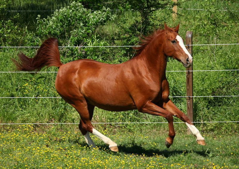 Your typical brown horse. They usually have some sort of white markings, such as socks, or a blaze. Sometimes a chestnut horse will have a lighter. crème colored mane. This is called a flaxen chestnut. A horse that appears to be a dappled bay, but has a red mane, is called a liver chestnut. There are also blonde chestnuts, which are…well, blonde!