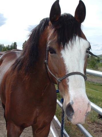 A blaze is a broad white stripe that runs down the center of a horse's face. Sometimes it will cover almost all of the face.