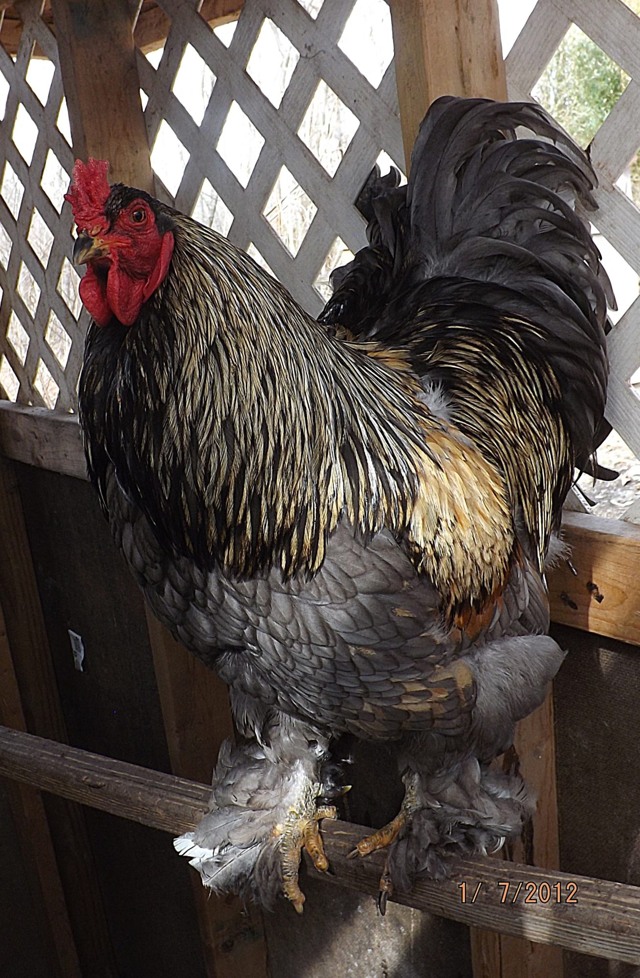 Congrats, stunning colours. I love seeing the results too. I have a young light cockerel that is half brahma, half delaware, and he´s going to be really big. I also have introduced Orpingtons, and that gave a good chunky bird, too, mainly buff, but some lemon. such fun. But this little cockbird in the pic is not a mix. At least, I do know there are at least 3 generations of Brahma behind him, so I found this colour interesting, as I really expected him to be partridge. So, I shall think carefully about which hen to put him with and see if I can get more like him. But as he´s already closely line-bred, I´ll have to think carefully.![]()